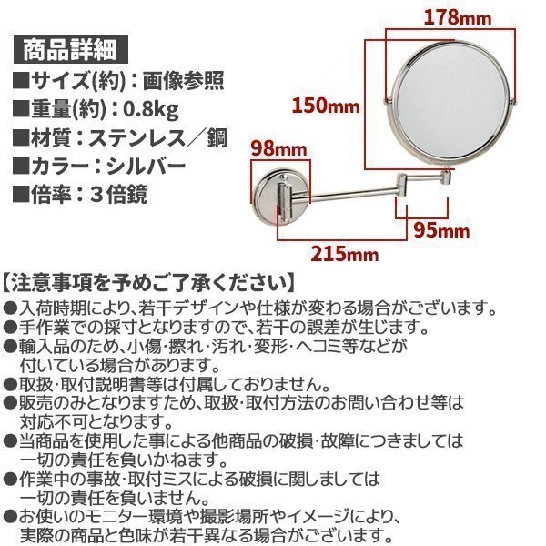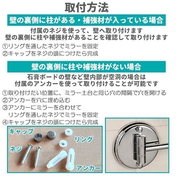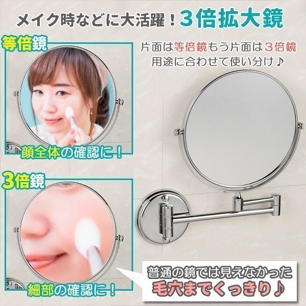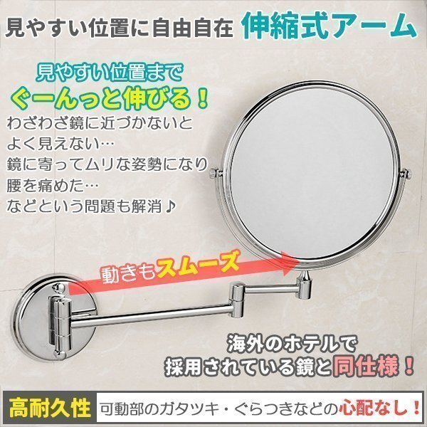 拡大鏡 ホテルミラー 壁付け 壁掛け 化粧鏡 アームミラー スイングミラー 両面 鏡 ウォールミラー 伸縮 化粧ミラー 洗面 洗面台 洗面所