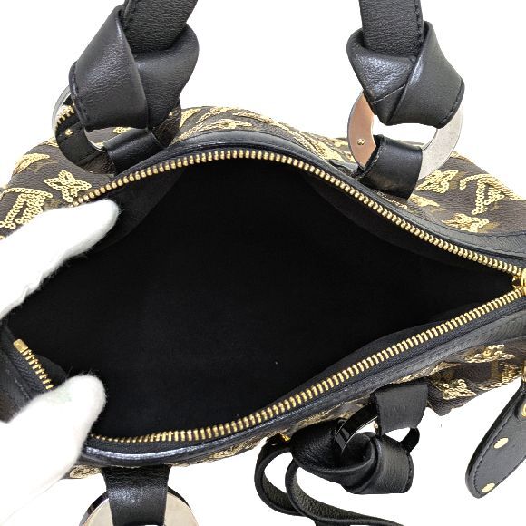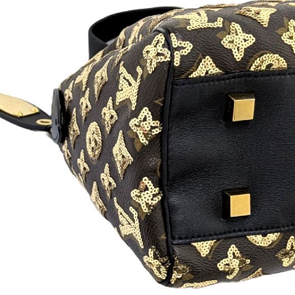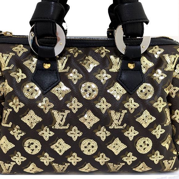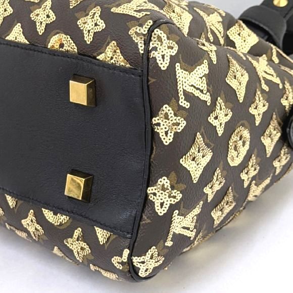こちらのモノグラム・エクリプスは2009年秋冬コレクションで発表された、モノグラム柄のスパンコールがあしらわれたラインです。 2016年に同じ名前で発表されたメンズラインとは別のものになります。 使用頻度が少なく、スパンコールも全て残っているようです。 底側の角のコバ擦れと、型崩れが僅かに見られます。 それ以外に気になるところはなく美品だと思います。 |