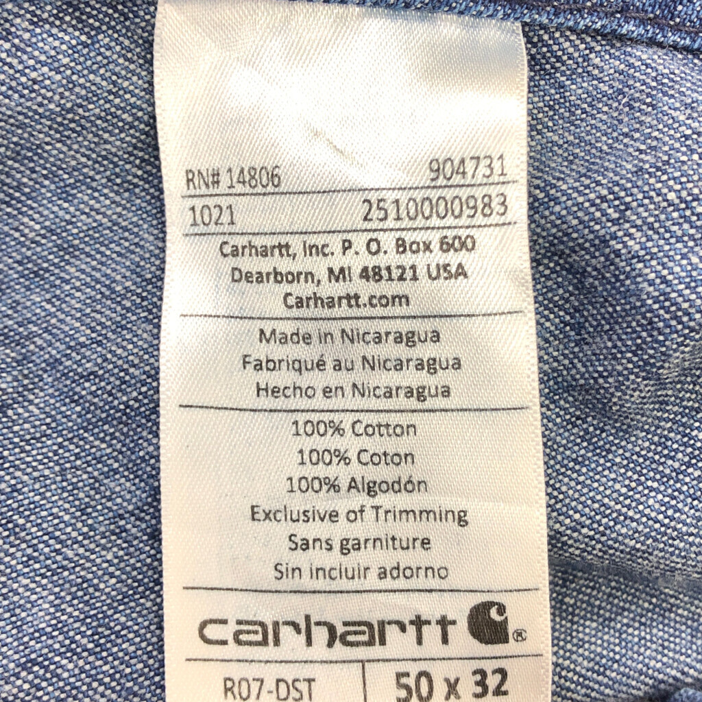 【商品管理番号】 R3597 【ブランド】 Carhartt/カーハート 【サイズ】 W50 L32 【実寸サイズ】 総丈:約28cm ウエスト:約122cm 股下:約83cm わたり幅:約39cm 裾幅:約173cm 【主な素材】 表地 : コットン 【色】 ブルー 【仕様】 大きいサイズ 57125 【状態】 汚れ:背中 キズ:もも 特記事項:使用感あり、色褪せ |