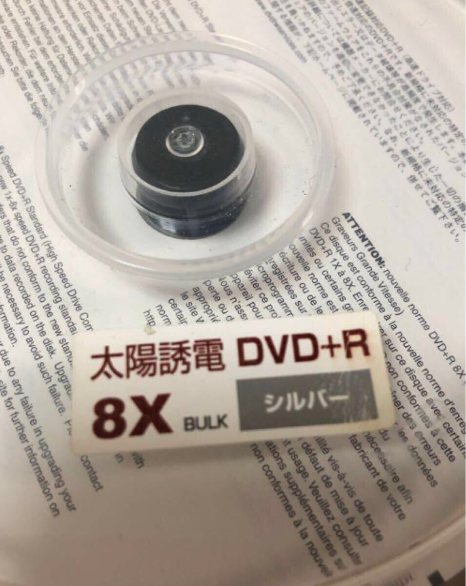 添付写真にあります「太陽誘電 DVD+R 8×BULKシルバー」と書かれたシールが2つあるうちの片方にだけ貼られています。