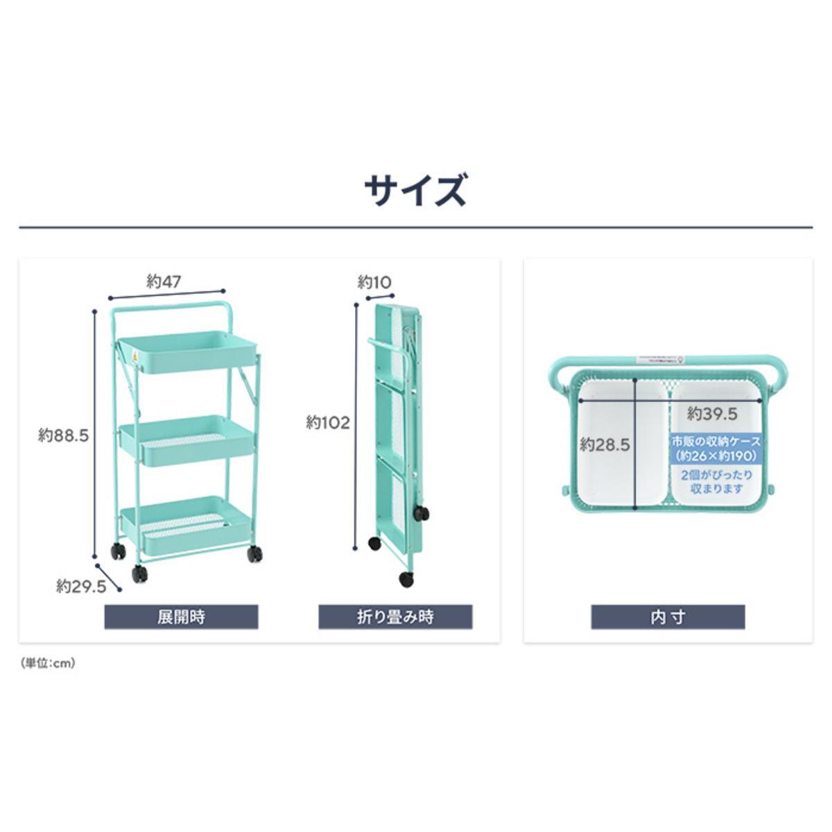 折り畳めるトローリーワゴン3段キャスター付 耐荷重12kg