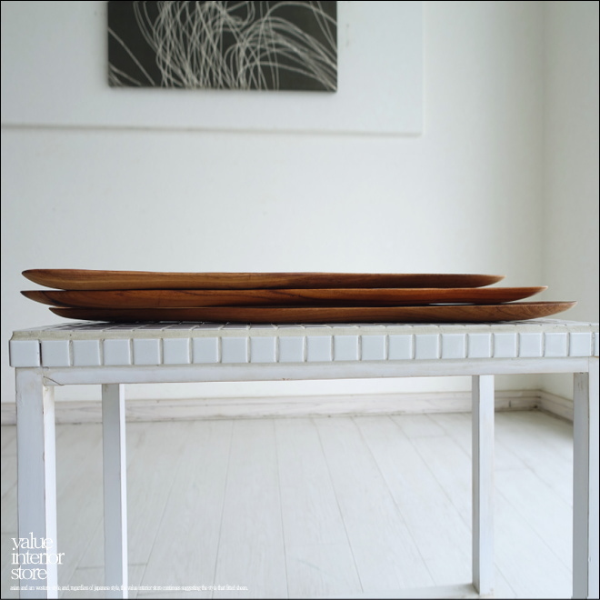 ■商品名 チーク長皿Snake60cm (販売価格は単価となります。) *こちらの商品は他サイトでも同時に販売を行っております。ご注文が重なりました場合、在庫状況によって販売をさせていただけない場合がございます。その際はご容赦いただきますよう何卒お願い申し上げます。 ■商品説明 世界の3大銘木の1つに数えられ高級材として知られるチークを使ったロングプレート。 チークの独特で味のある形や木目を活かし魅力的に仕上がっています。ハンドメイドながらなめらかな仕上がりで職人の技術が感じられます。表面はミネラルオイル(ライム油・大豆油・チョウジ油・ナツメグ油)仕上げ。柔らかな口当たりの良さが魅力的で、手になじみます。(当店の全ての木製食器は、輸入申告の際に食品等輸入届出書を提出しております。) ◇お手入れ方法 食器用洗剤で水洗いして頂いて大丈夫ですがなるべく早く水気を拭き乾燥させるとよいです。食洗機・乾燥機はお使いいただけません。またお使いいただくうちに艶がなくなった場合にはくるみ油やえごまオイル(食用)を薄く塗り乾燥させるとよいです。 ◇チーク材は世界三大銘木の一つとして知られ、硬さと張りがあり良質の天然油分を含むことから耐久性に優れています。特に細かな美しい木目が特徴で家具や建材など世界中で人気の高い木材です。 ◇日本製のような正確さは無いかもしれませんが、1点1点出来上がるまでの殆どの製作工程を手作業で行う、インドネシア家具職人たちの手づくり製法はとても暖か味が感じられます。細かな傷、ひび割れやフシ穴、色の濃淡、また反りなどの無垢材特有の”暴れ”が見受けられる場合がございますが、無垢材の素材や特徴、また手づくりのテイストとして工業品にはない自然の質感をお楽しみ下さい。 ◇画像はサンプル画像となります。天然木や手作業での表面仕上げのため、木目や仕上がりの風合い(色味の濃淡)は個体差があります。 ■仕様 ・サイズ : 幅約60cm×奥11cm×高さ約2cm ( ※サイズは、計る場所や商品により1cm程度の違いがございます。予めご了承ください。) ・材質 : チーク材(総無垢) ・生産国 : インドネシア ■備考 ◇掲載画像は十分配慮しておりますが、撮影時の光の反射具合などにより色彩に違いがでますこと、また、ハンドメイドのため1点1点多少違いもございますので、予めご了承下さい。 ◇商品はチーク長皿【 販売価格;単価 】 です。その他はイメージです。 ◇こちらはギフト包装をお受けできません。 |