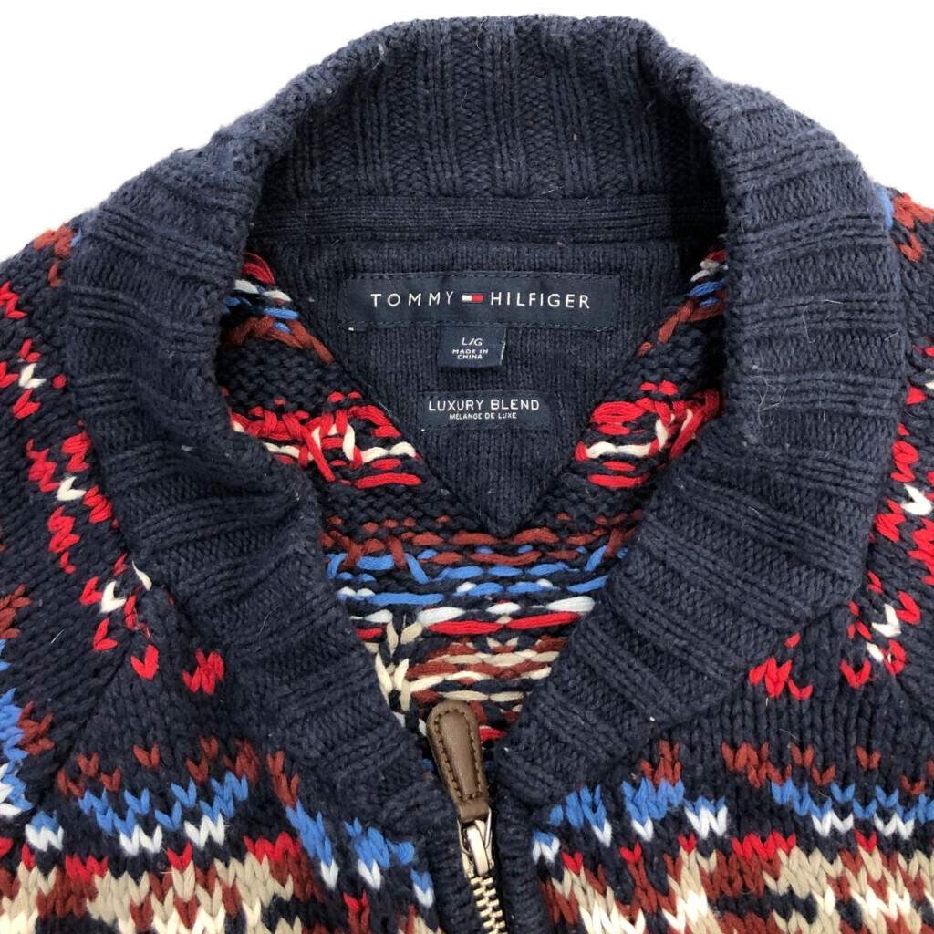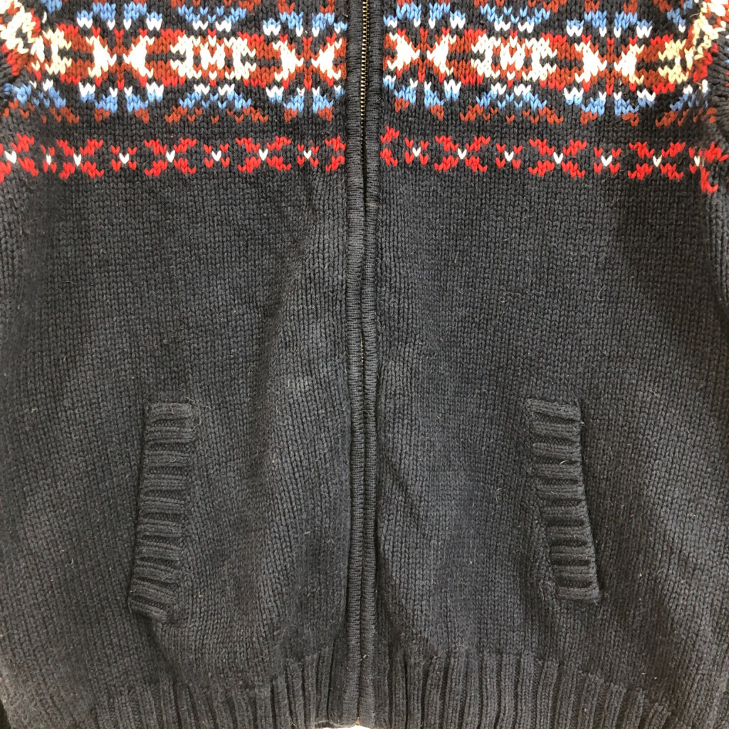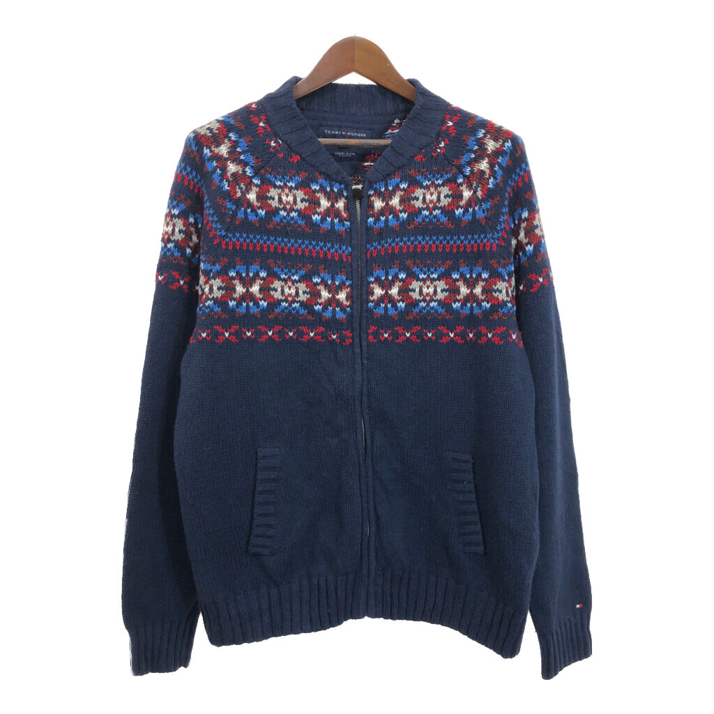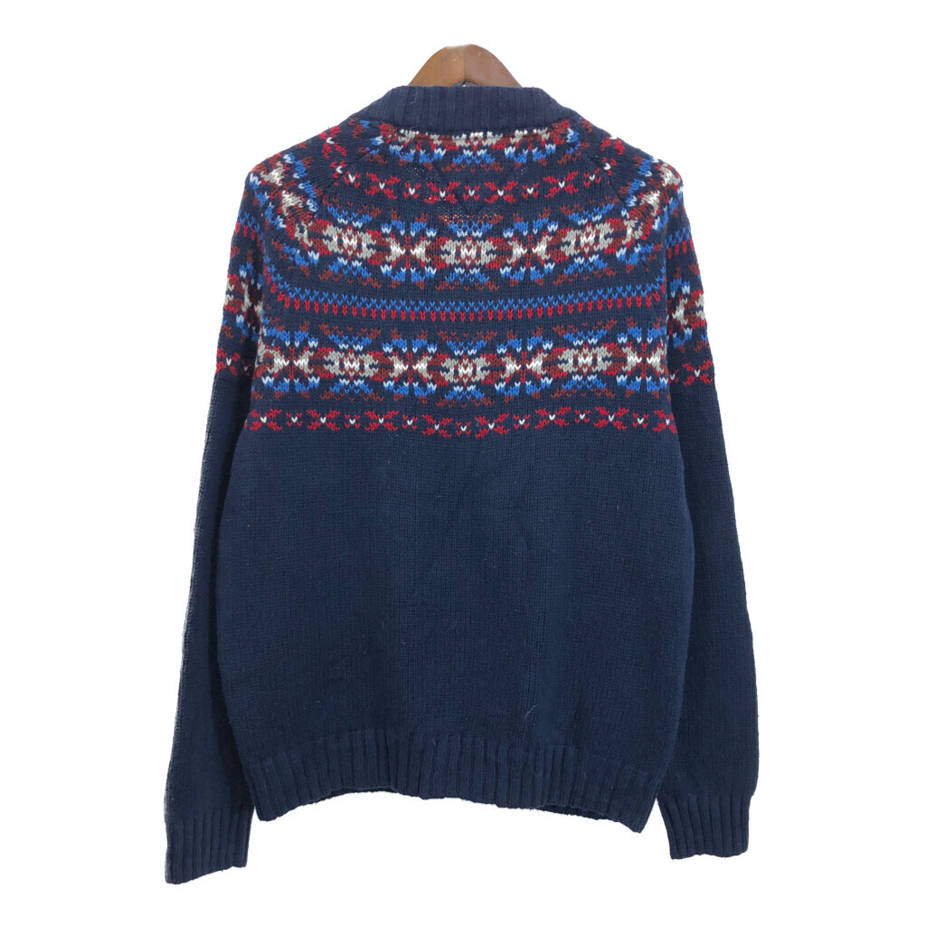 【商品管理番号】 R9867 【ブランド】 TOMMY HILFIGER/トミーヒルフィガー 【サイズ】 L 【実寸サイズ】 着丈:約73cm 身幅:約61cm 裄丈:約92cm 袖下丈:約60cm 【主な素材】 表地 : コットン 【色】 マルチカラー 【仕様】 ノルディックセーター 【状態】 破れ:腰 特記事項:毛玉、毛羽立ち |