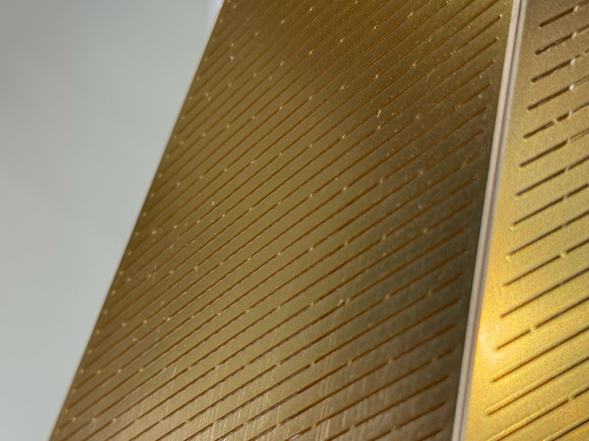 イエローゴールドのカラーリングにパンチングやエッジラインに表現される陰影のシルエットとカラー変容も見事。
