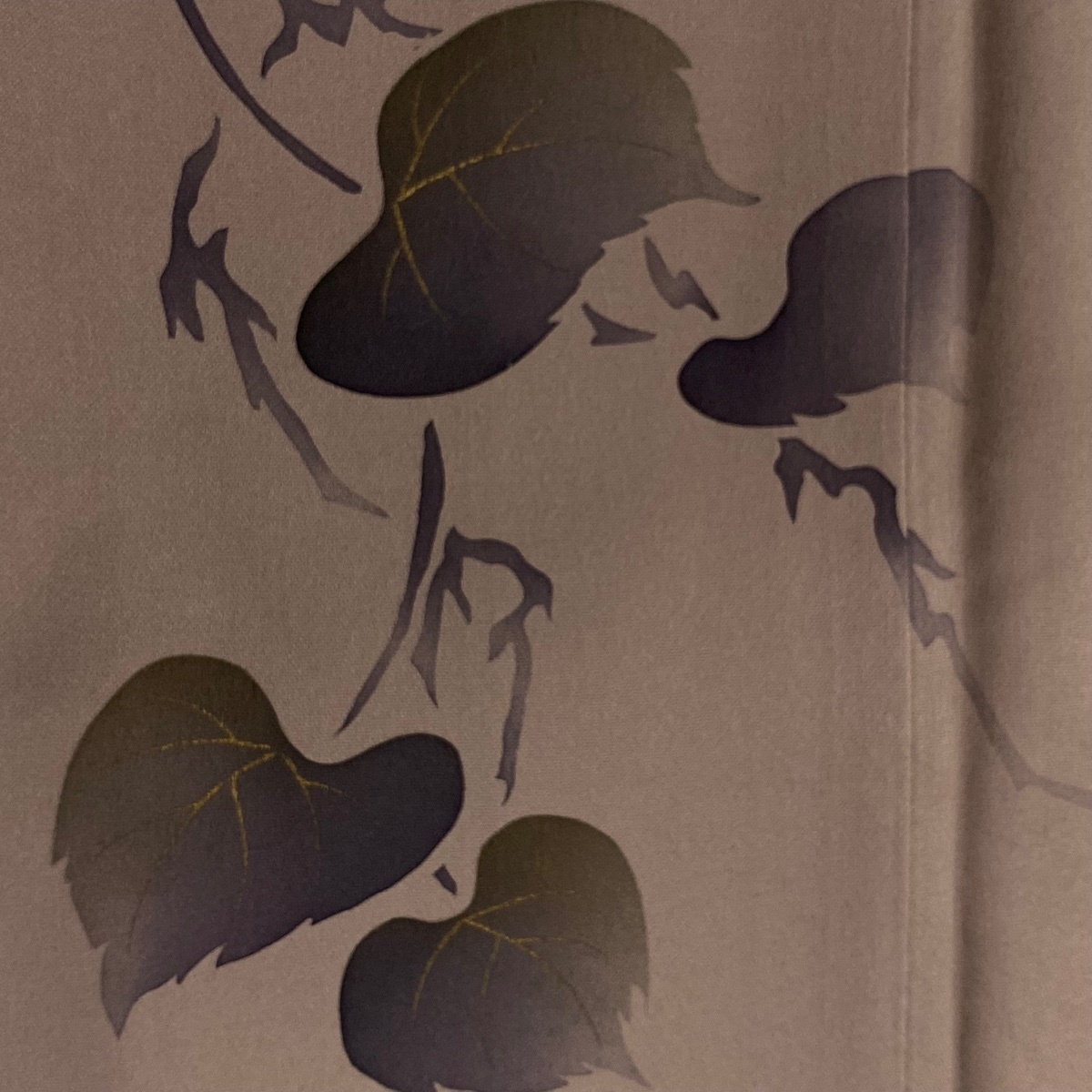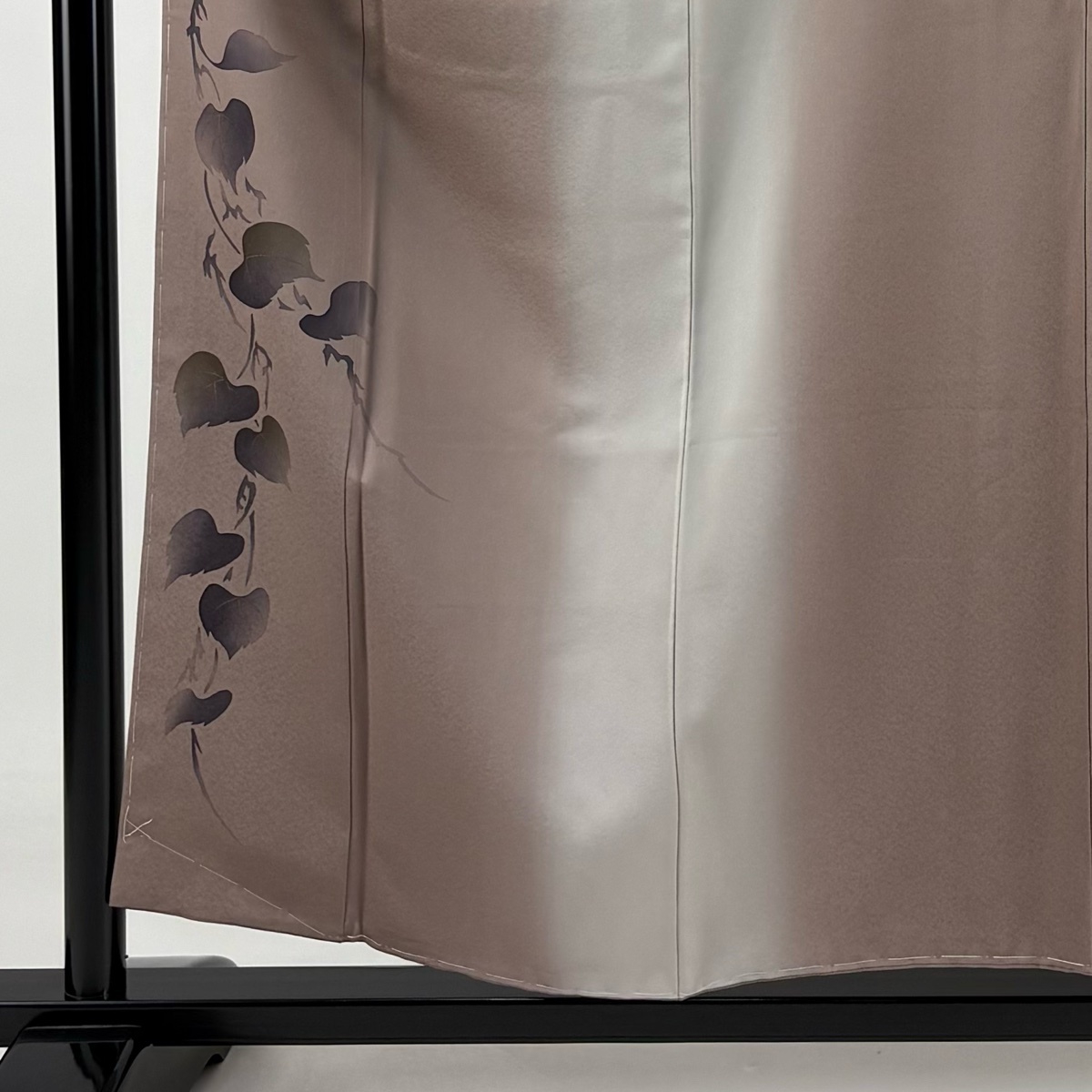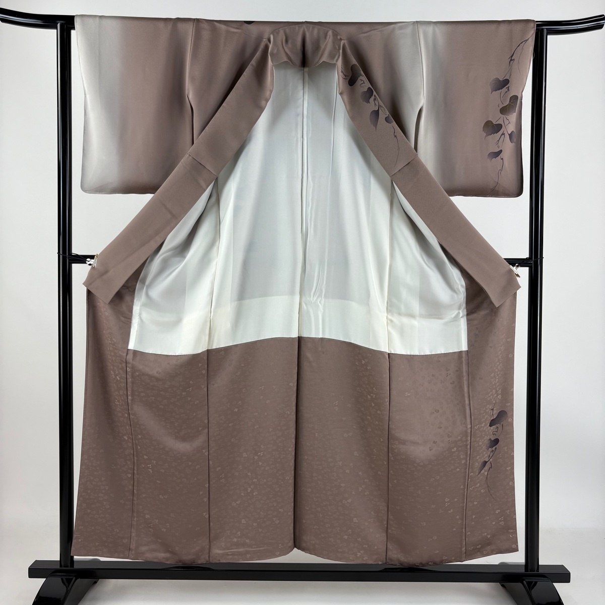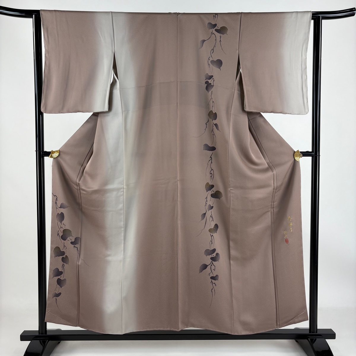 付下げ 秀品 落款 葉 金彩 ぼかし 薄小豆 袷 身丈156 裄丈63 S 正絹 【中古】 |