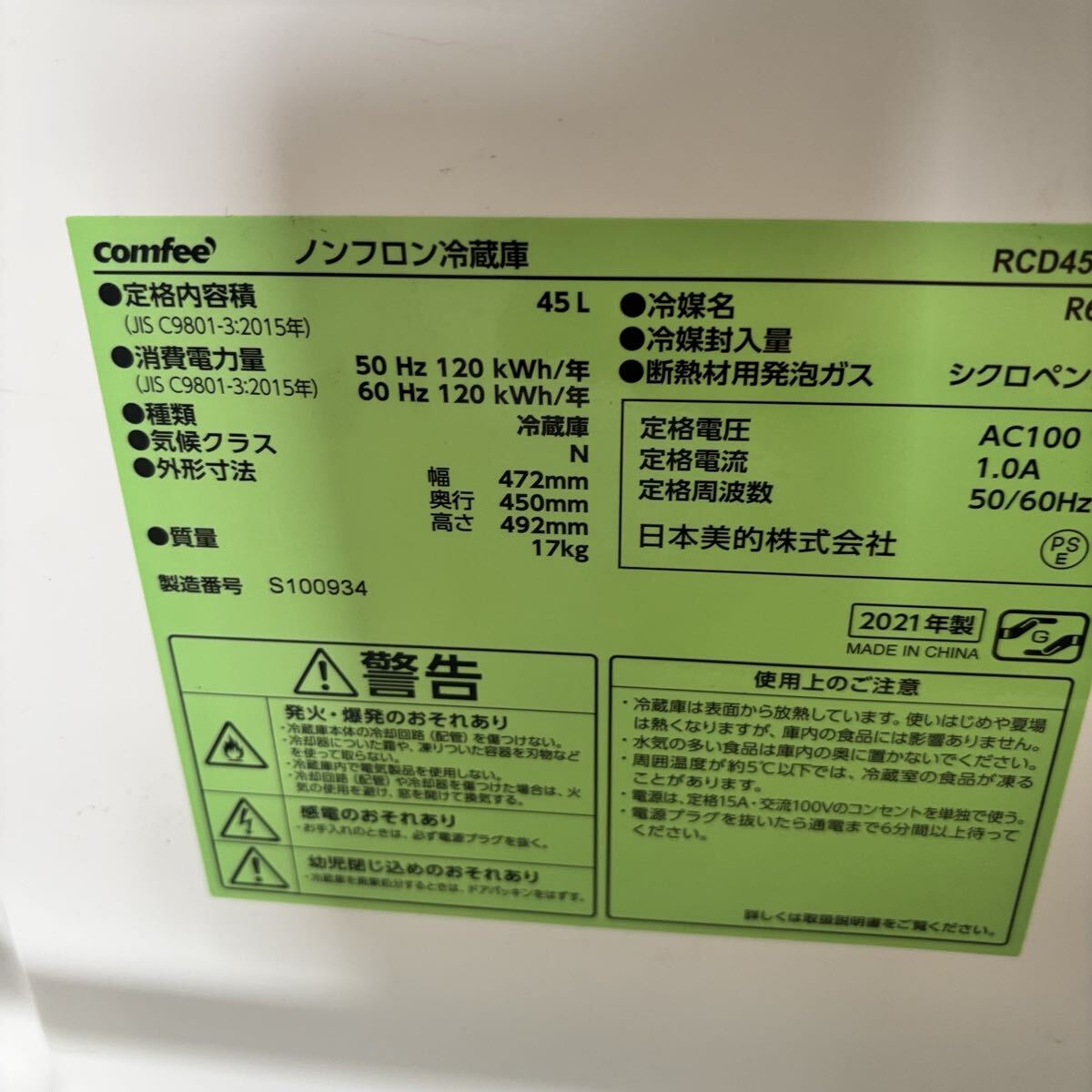 Comfee 冷蔵庫 RCD45WH/E 45L 小型冷蔵庫 ミニサイズ 1ドア