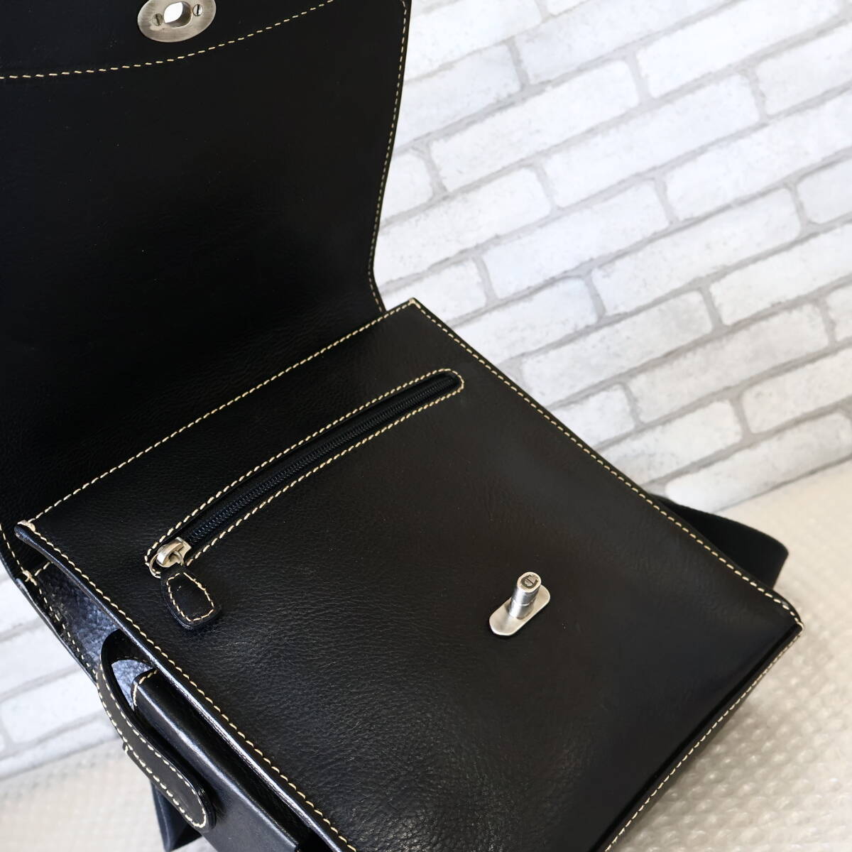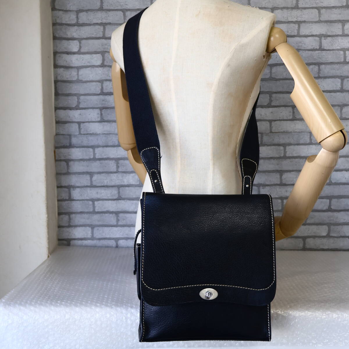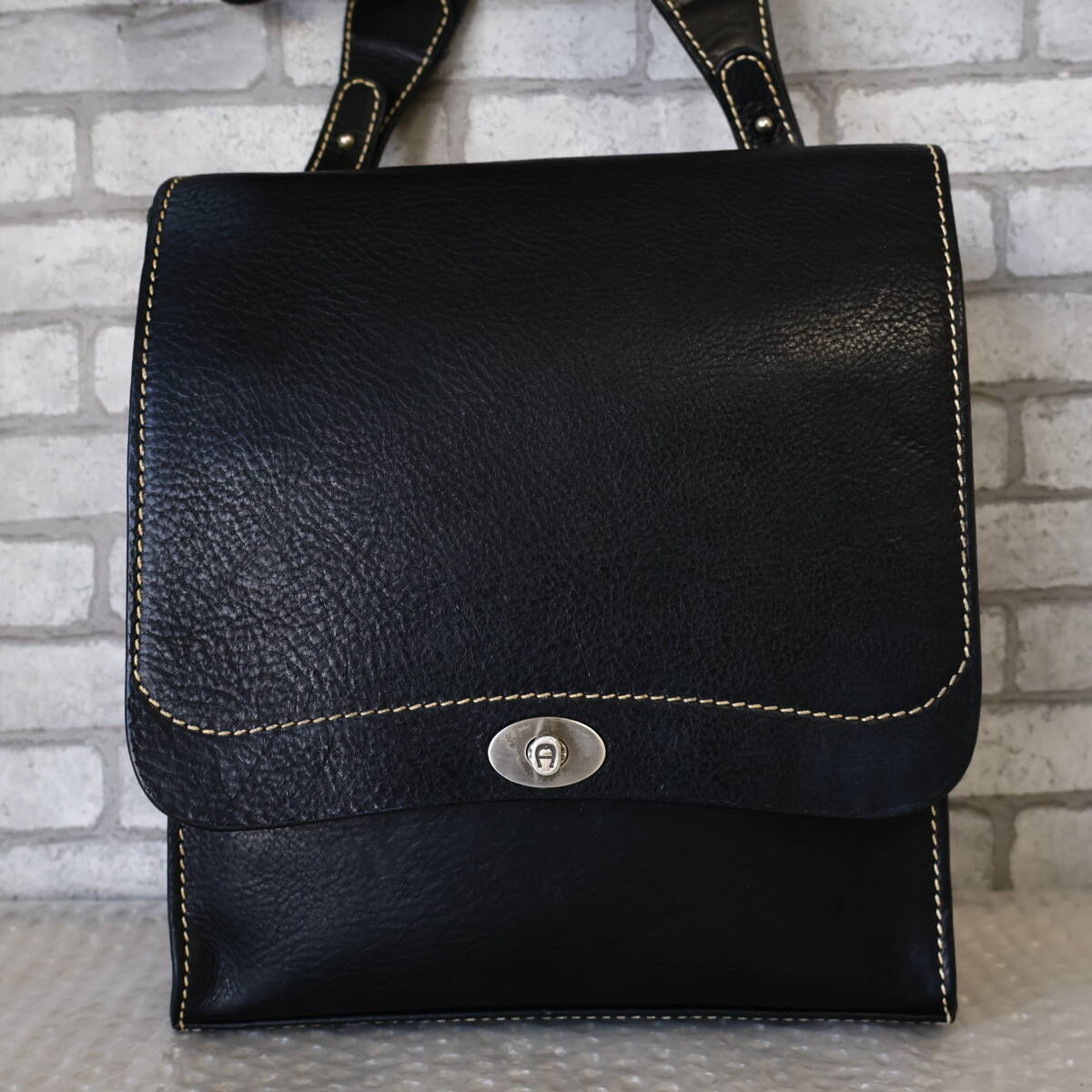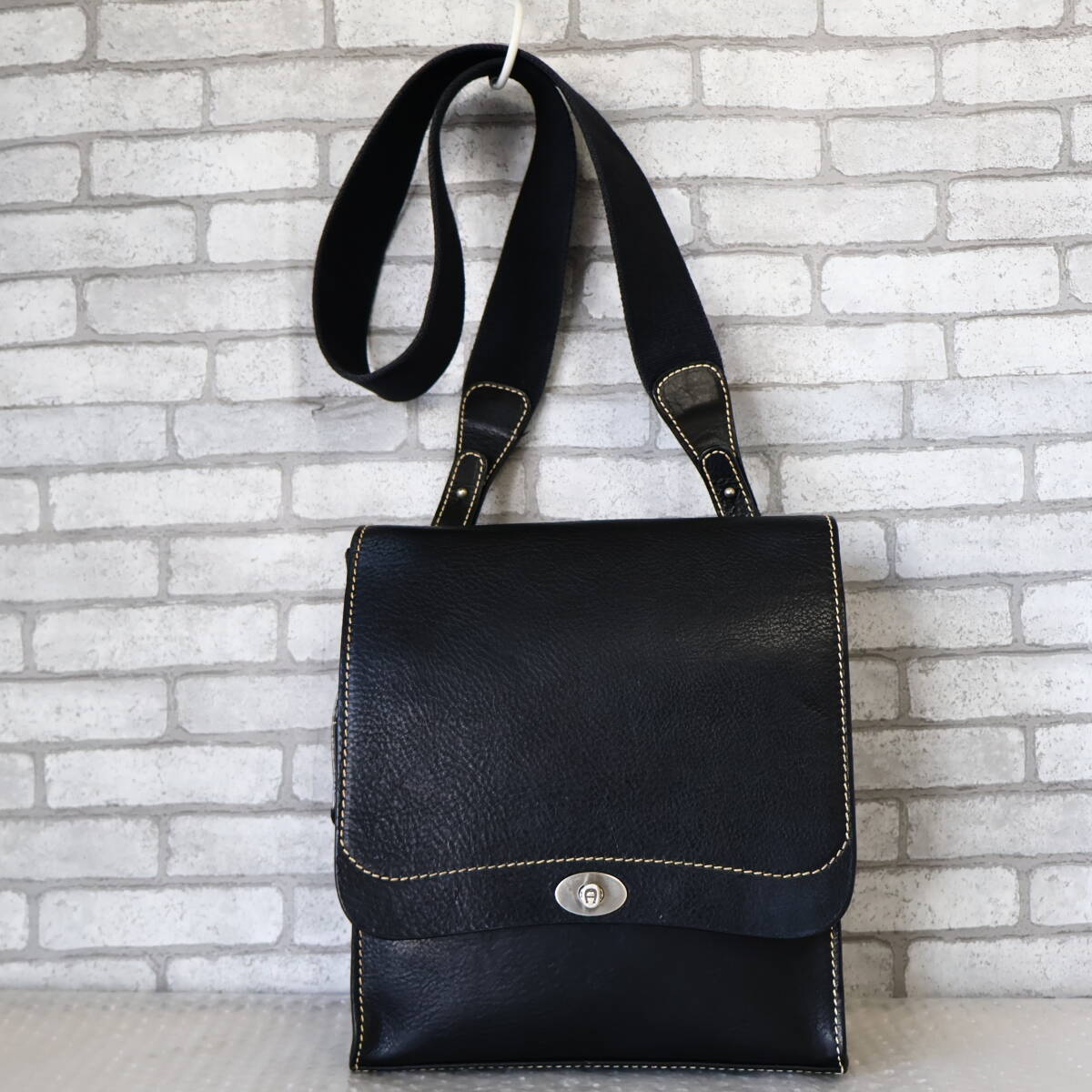 *美品*イタリア製*AIGNER/アイグナー*オイルヌメ*レザー*ショルダーバッグ*黒*