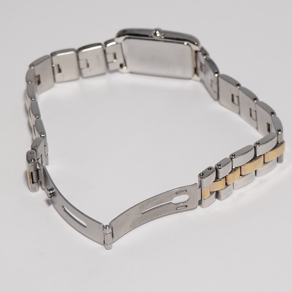 セイコールキアスクエアレディース腕時計です。 稼働品で除菌クリーニング致しておりますのですぐにご使用いただける状態です。 ☆管理番号:H169 ☆稼働品 ☆クリーニング (超音波洗浄+磨き作業+エタノール除菌クリーニング) ☆防水:日常防水 ☆ムーブメント:クォーツ ☆素材:ステンレス ☆電池交換:稼働品のため電池交換致しておりません。 【サイズ】 ◇ケース幅約18mm×28mm(リューズ含まず) ◇厚さ約6mm ◇腕回り約180mm 【カラー】 ◇文字盤:ホワイト ◇ケース:シルバー ◇ベゼル:シルバー・ゴールドコンビ ◇ベルト:シルバー・ゴールドコンビ 【状態】 ◇B ☆全体評価:全体的に薄キズがある通常程度の中古品です。 ☆ケース:薄キズ ☆ベゼル:薄キズ ☆ガラス:キズなし ☆裏蓋:薄キズ ☆ベルト:薄キズ ☆その他特記事項:- 【付属品】 ◇本体のみ ※公安委員会の古物商許可証の元古物市場(コメ兵、ブランドオフ、エコリング等)にて購入したものです。 全て【正規品保証】致します。 過去1度も経験はございませんがコピー品であった場合返品返金対応をさせていただきますので安心してご購入下さい。 |