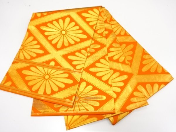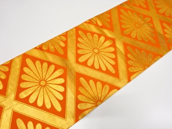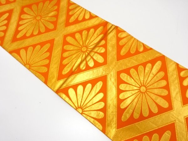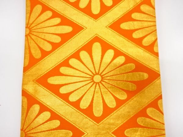 ys7521729; 斜め格子に花菱模様織出し丸帯(材料)【アンティーク】【着】