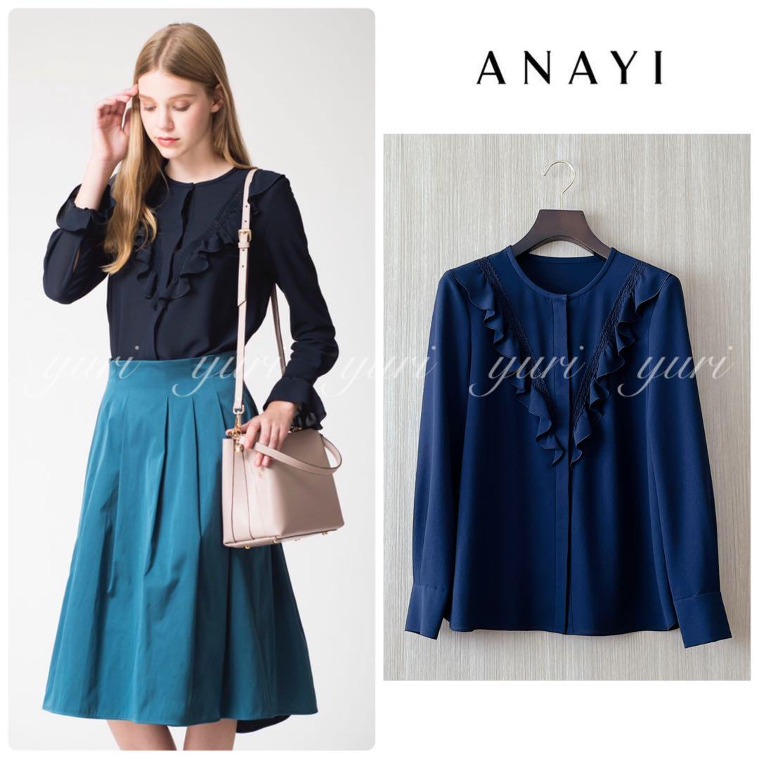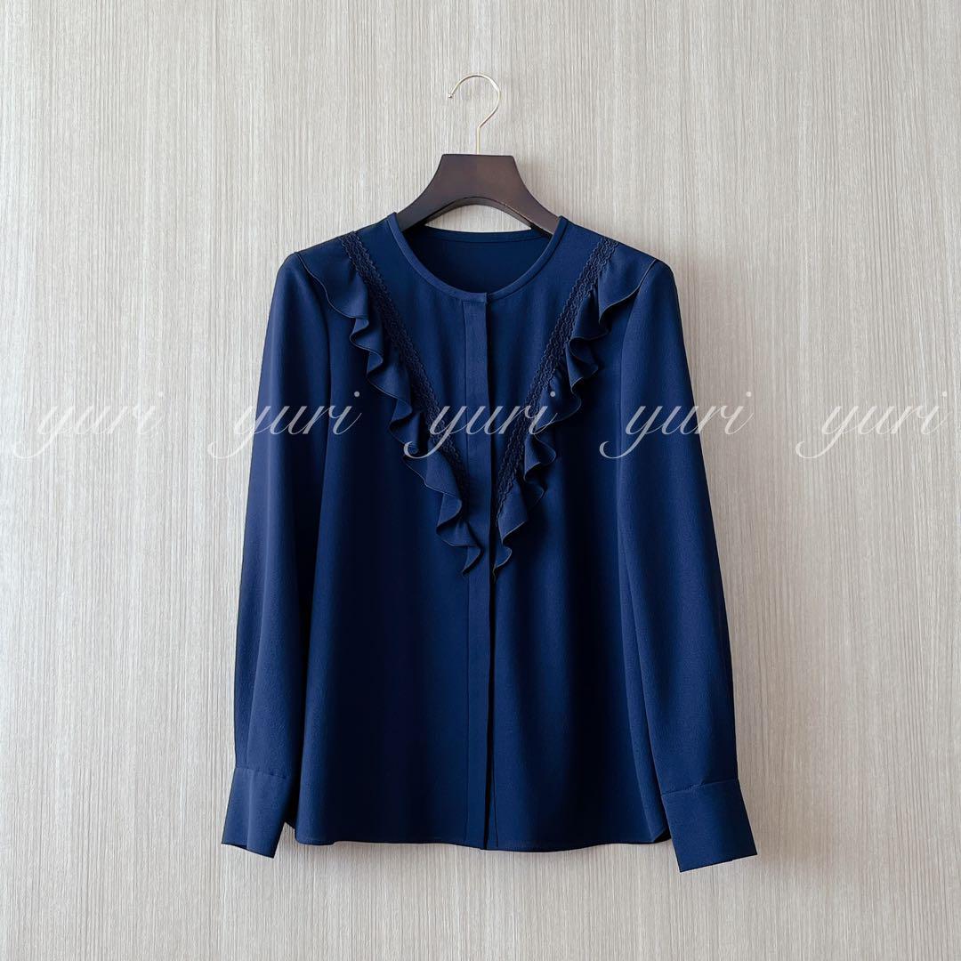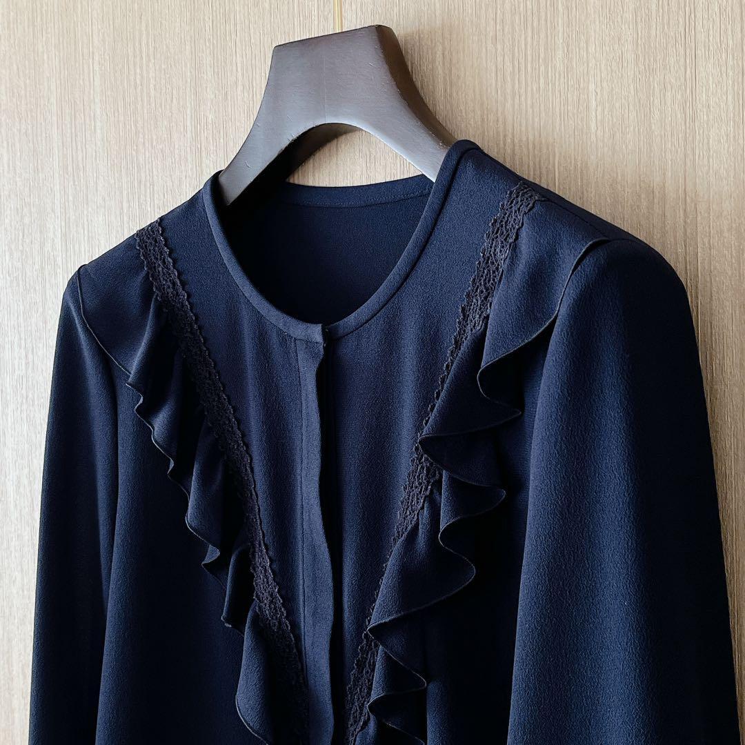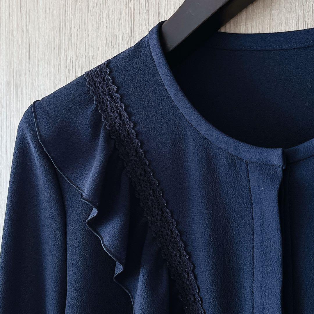 【258】アナイ クレープジョーゼットフリルブラウス 濃紺 36
