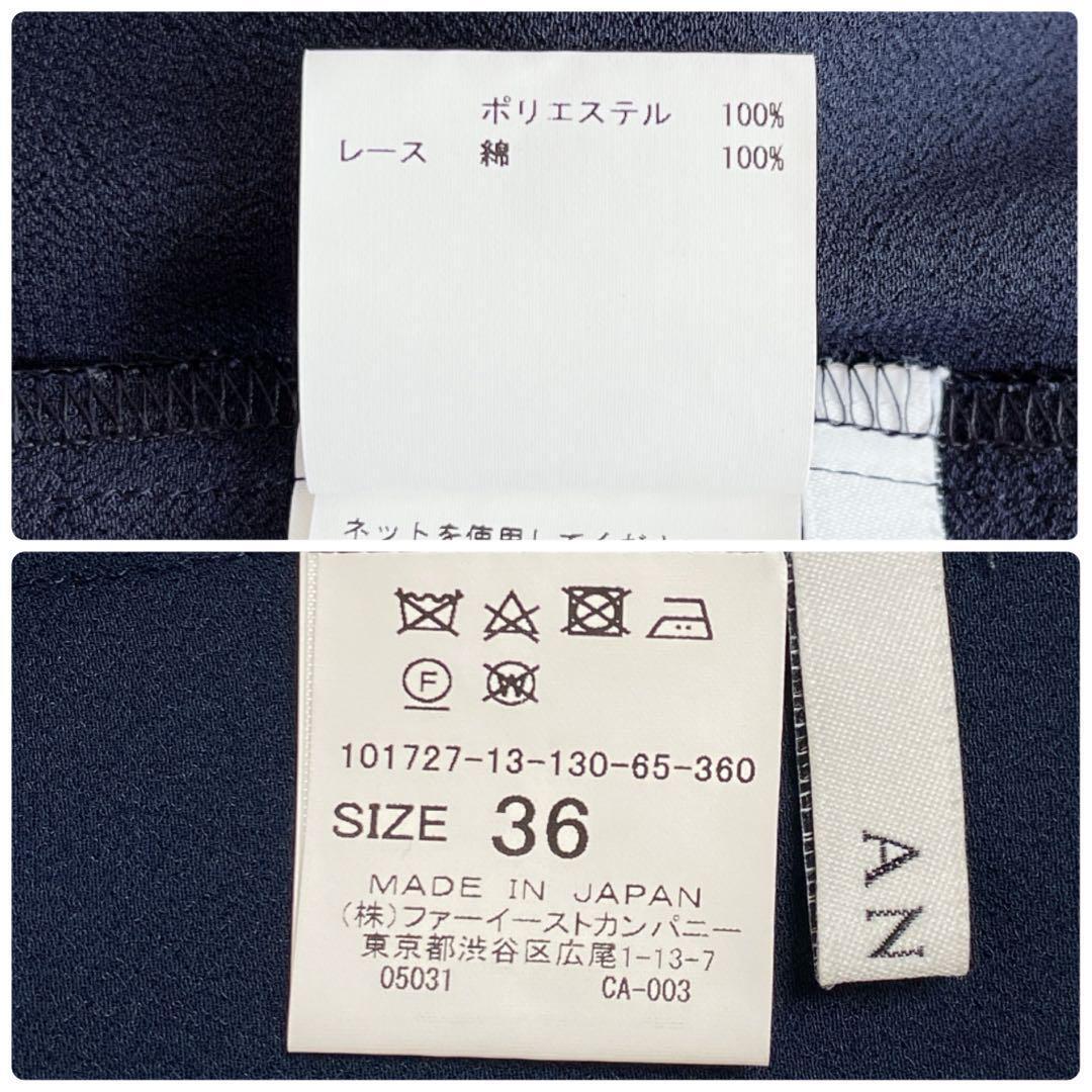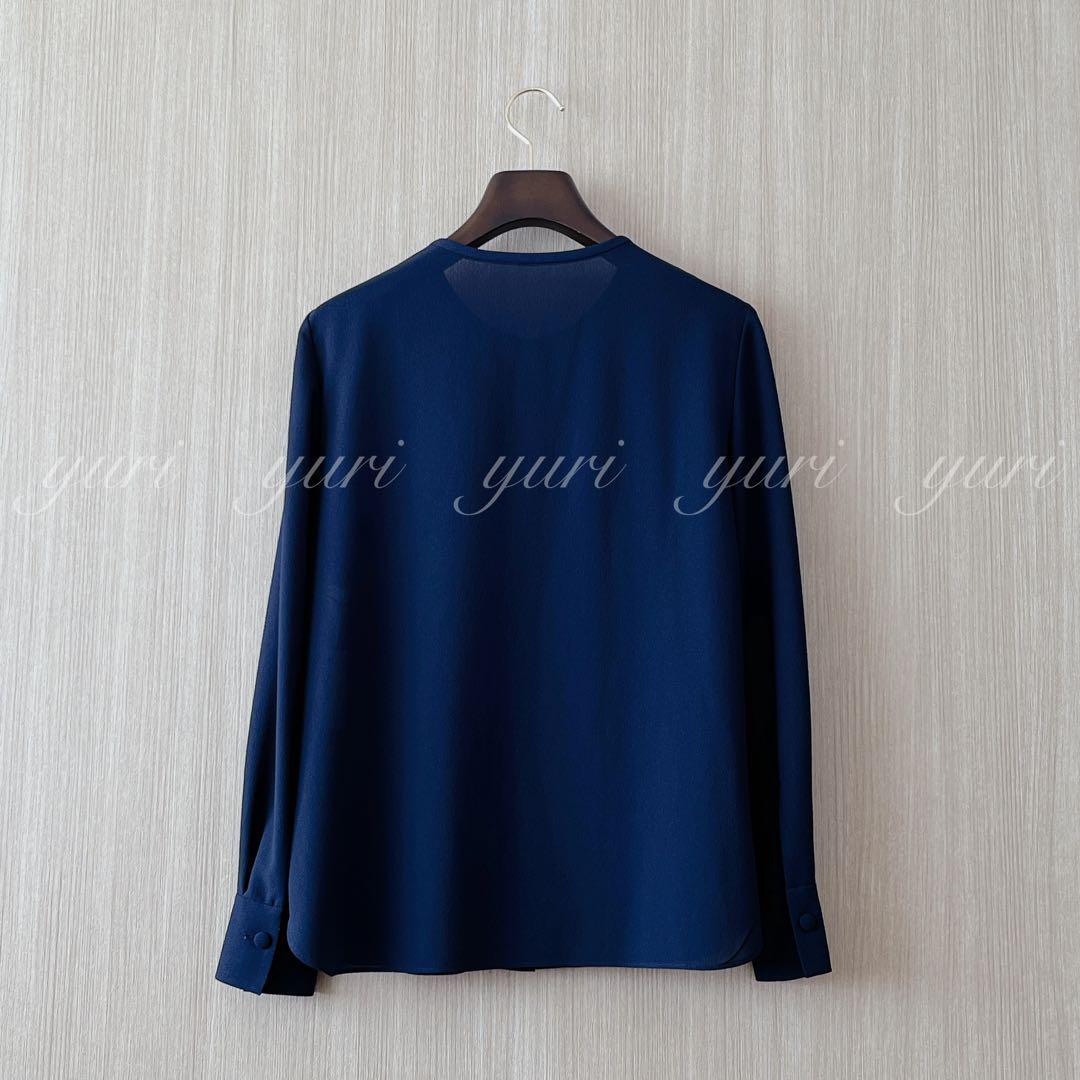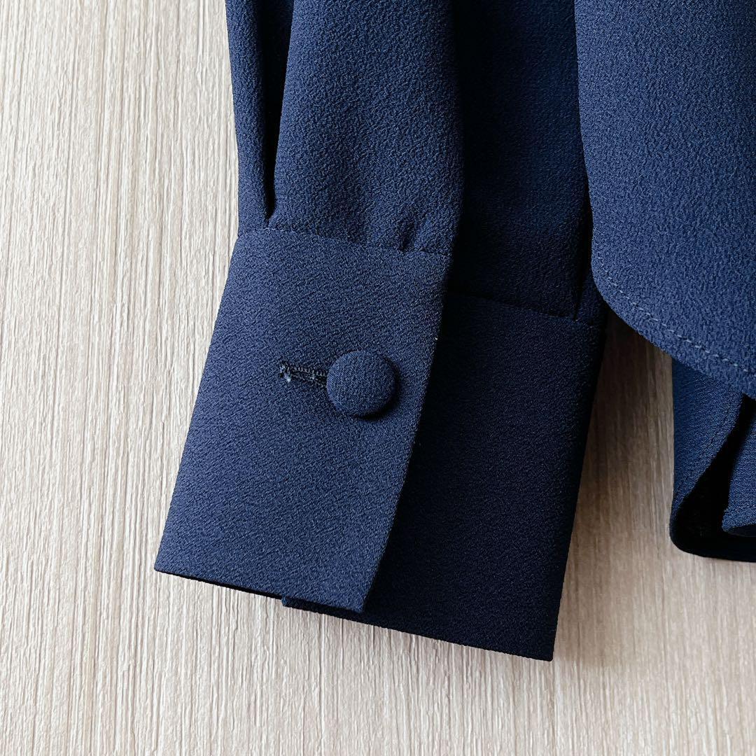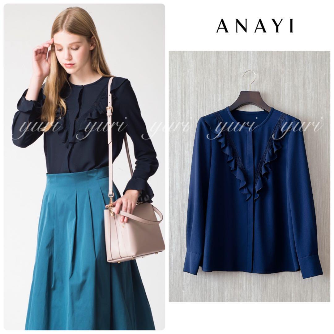 【258】アナイ クレープジョーゼットフリルブラウス 濃紺 36