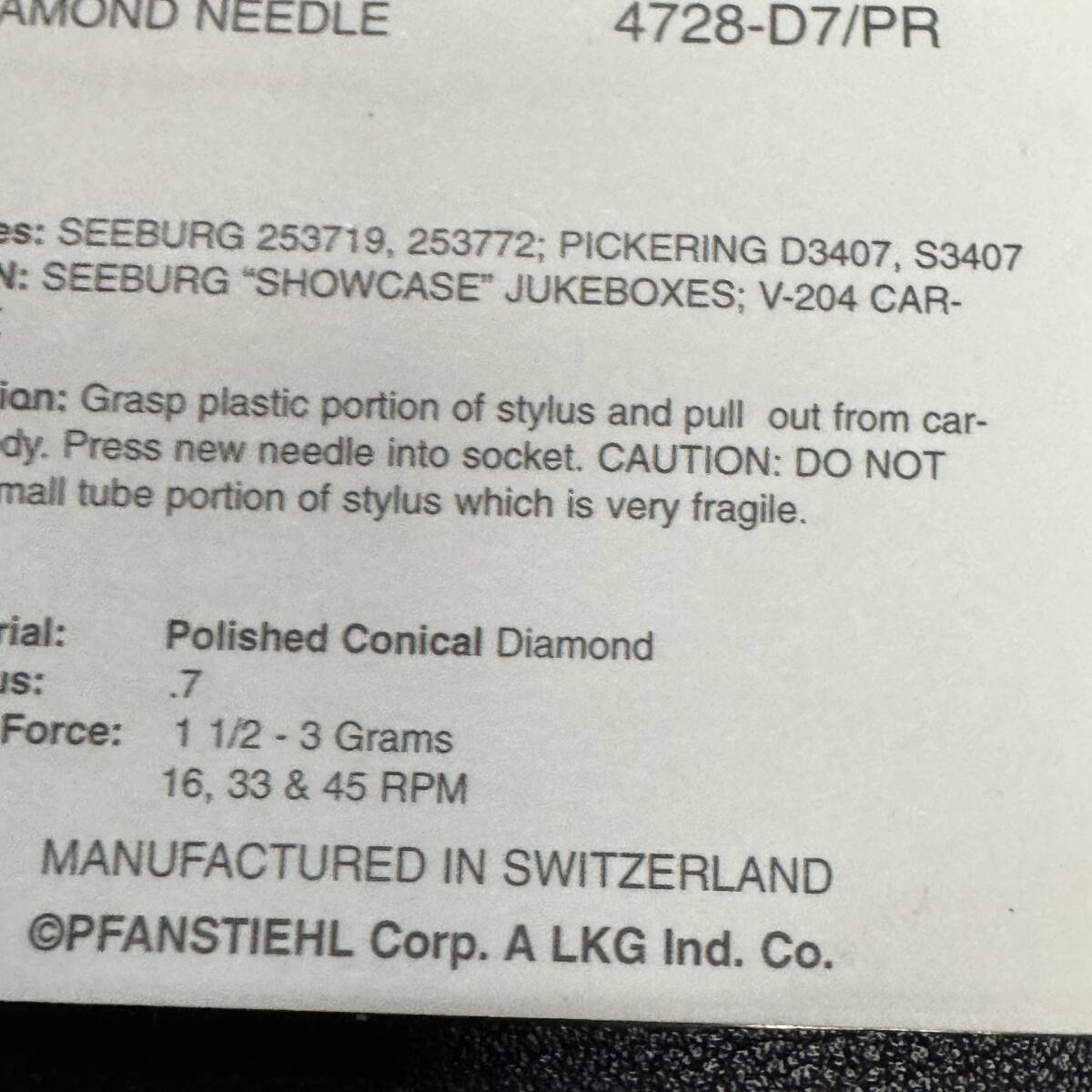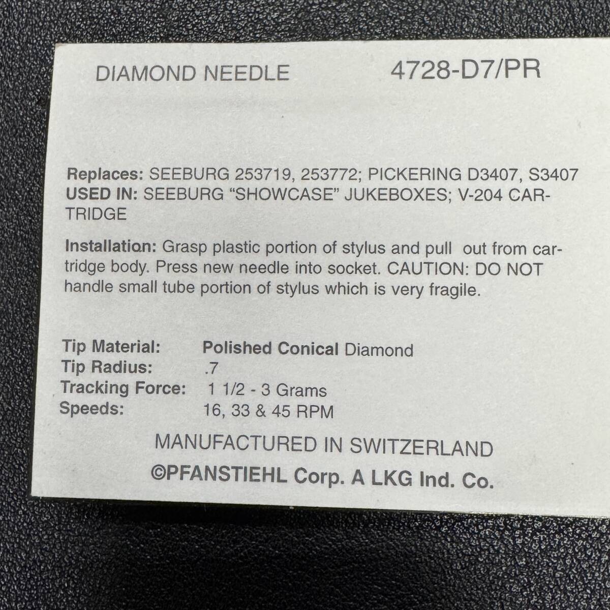 シーバーグ Seeburg ジュークボックス用 Jukebox レコード針 新品 4728-D7/PR yellow 1966-84年の機種用 針2本入り 送料無料