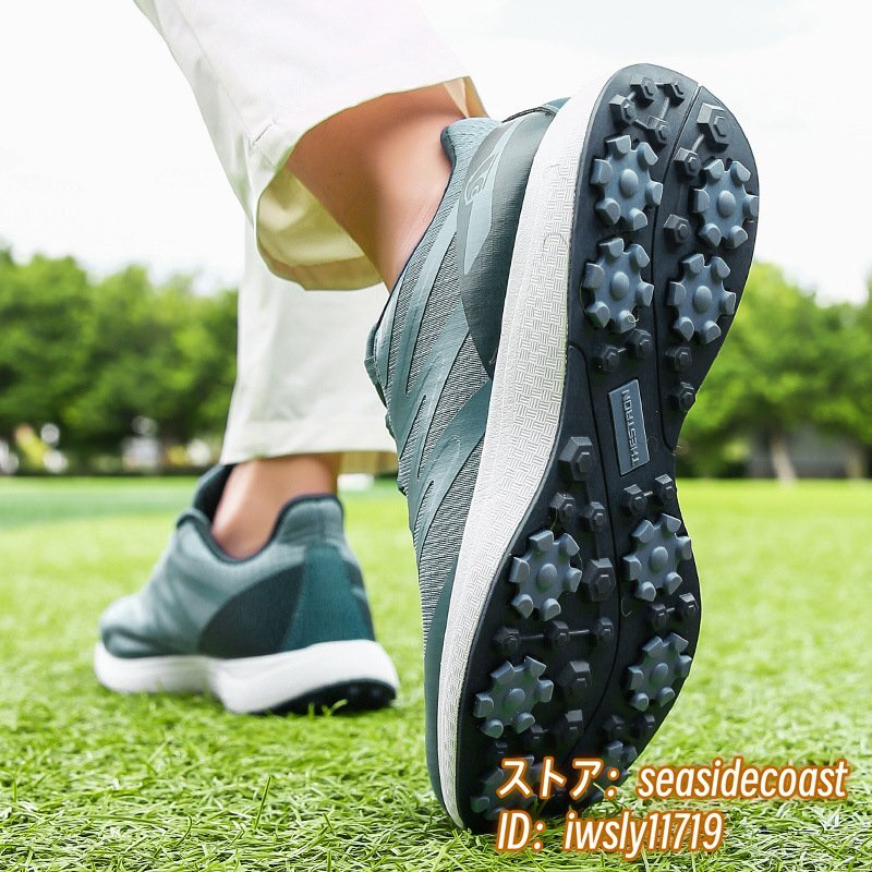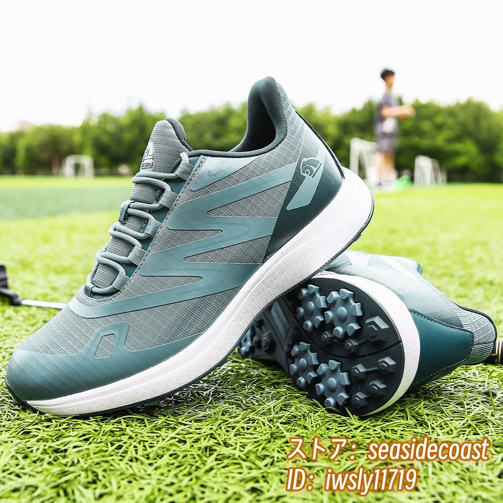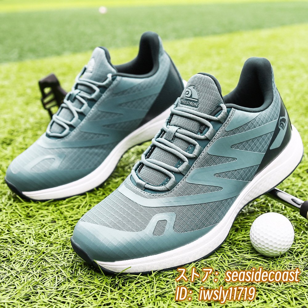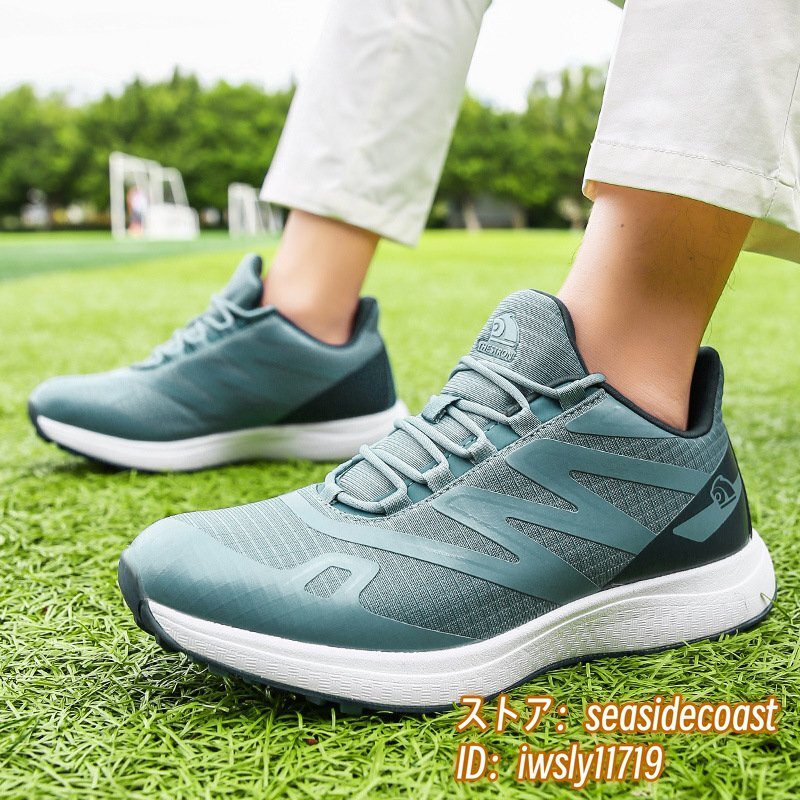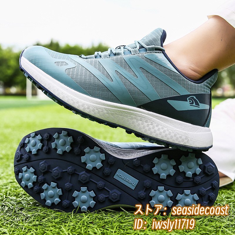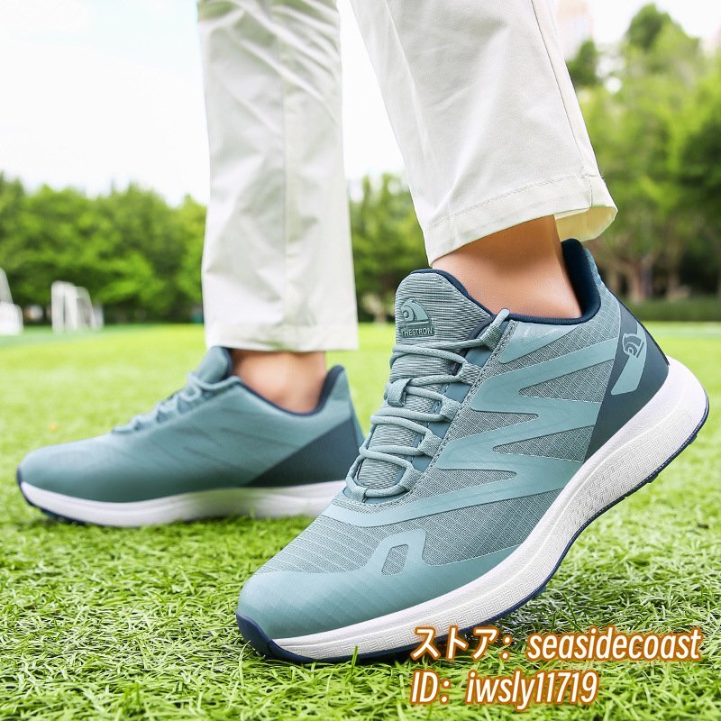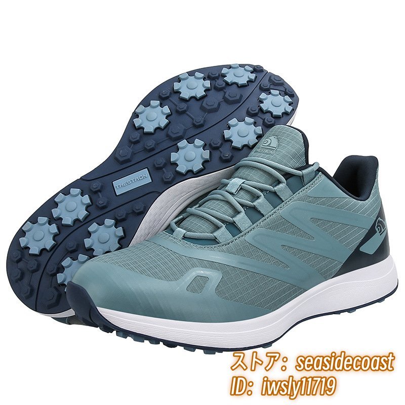 高級品■ゴルフシューズ 新品 スポーツシューズ 強いグリップ 運動靴 切替 メンズ 幅広 紳士 スニーカー 防滑 耐磨 通気性 ブルー 27.5cm