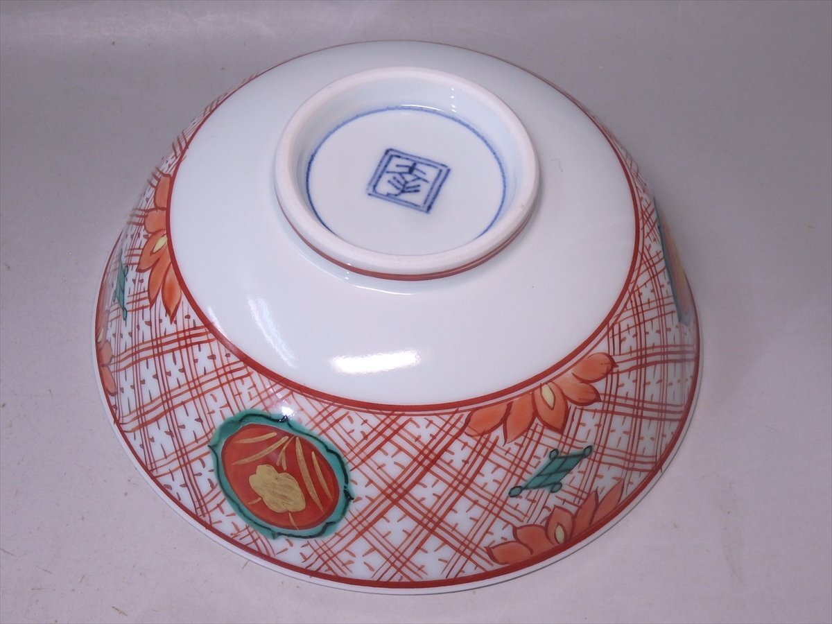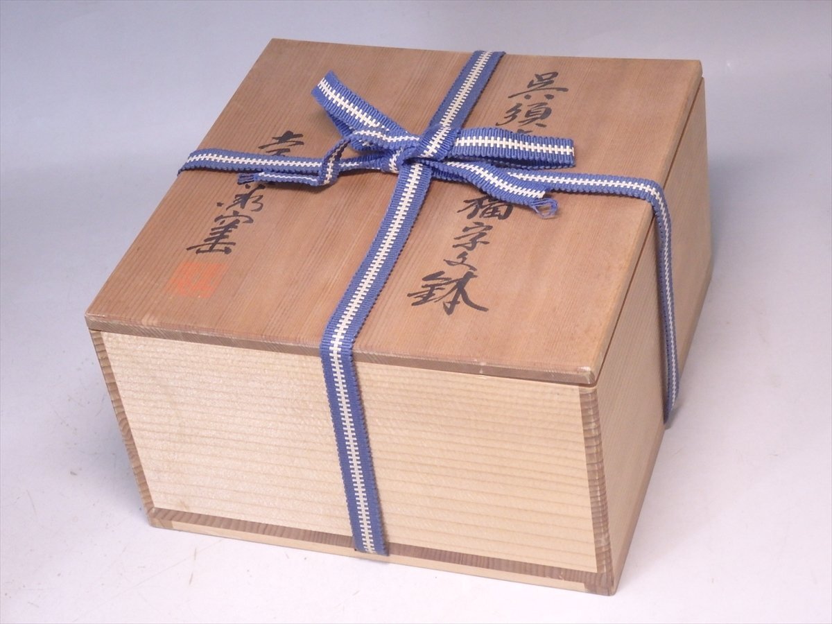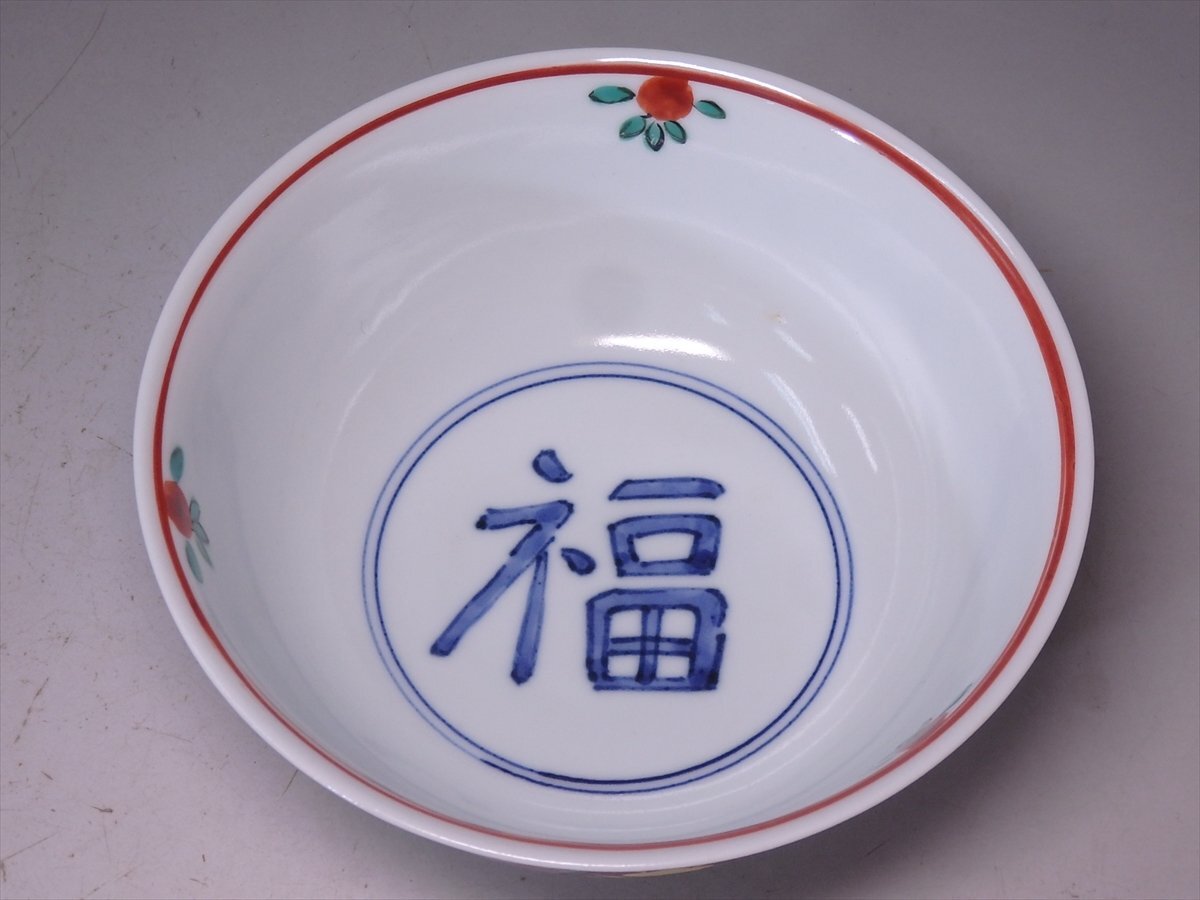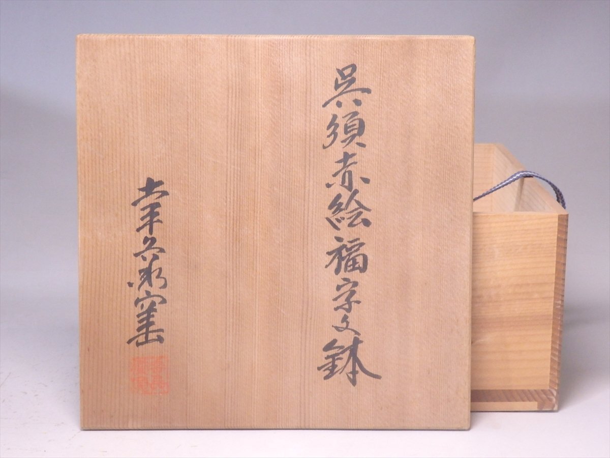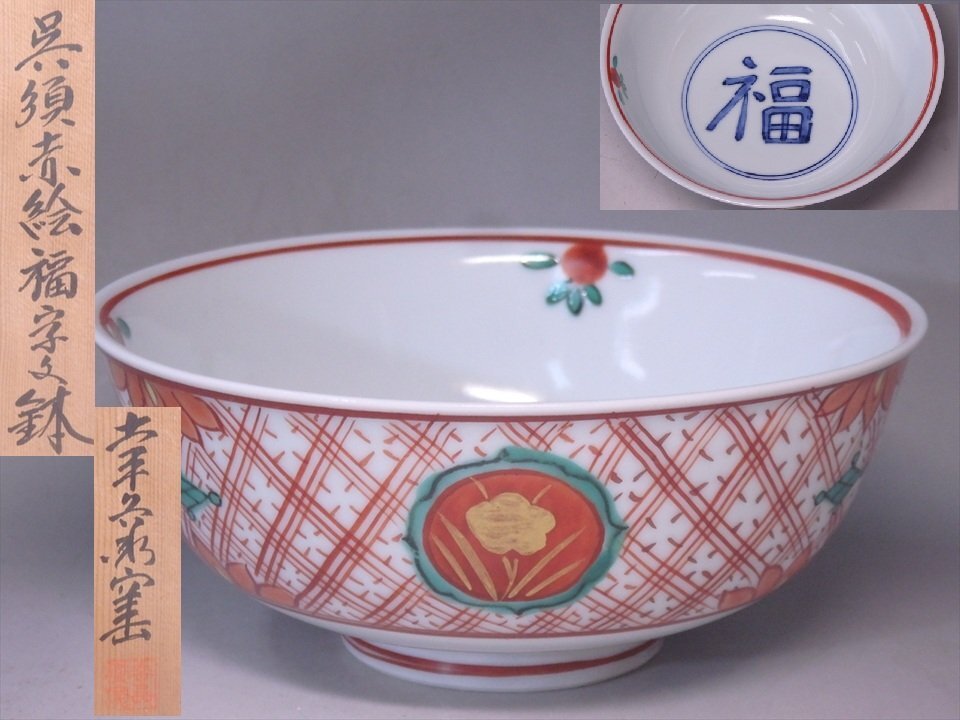 ★幸兵衛窯【呉須赤絵福字文鉢 共箱】人間国宝 加藤卓男 六代当主当時 小ぶり! 直径17×高さ7.2cm 茶道具 和食器 美濃 瀬戸 菓子鉢