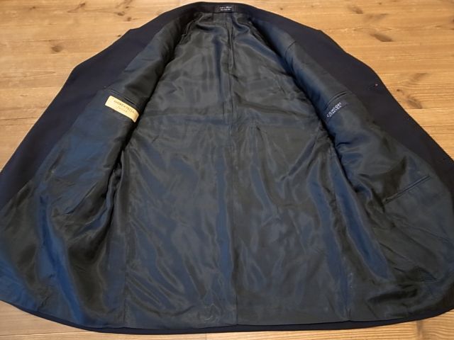 ◆ブランド 「Andrew Fezza」”fusion” アメリカ古着 ●サイズ表記 42R 実寸サイズ 2XL(3L) 肩幅…50cm(肩先から肩先の間の長さ) 身幅…60cm(両脇を横直線に結んだ長さ) 着丈…80cm(後衿ぐり中央から後身頃裾) 袖丈…64cm(袖付けの肩先から袖先) ※平置き状態での素人採寸ですので、多少の誤差はご了承ください。 ●素材…100%WORSTED WOOL オールシーズン対応 ●色…濃紺 ●ポケット… フラップポケット ●裏地…総裏仕立て ●ベント…ノーベント ●製造国表記…MEXICO ●状態…使用感は少ない美品です。 ★送料 全国一律 700円 佐川急便 (北海道900円 沖縄その他離島1700円) ※複数ご購入の場合、同梱発送可能です。 |