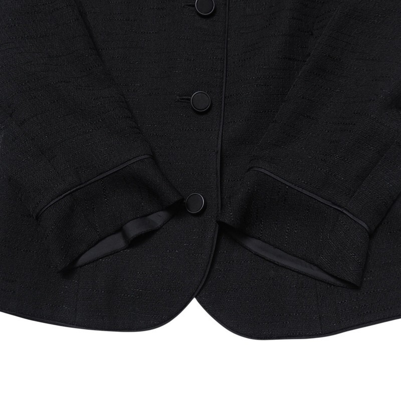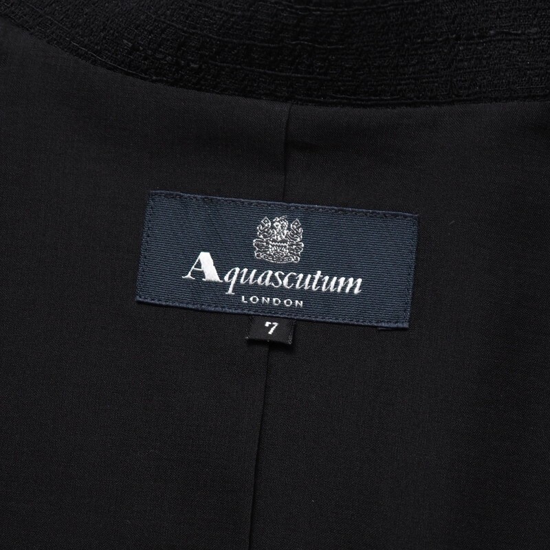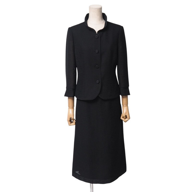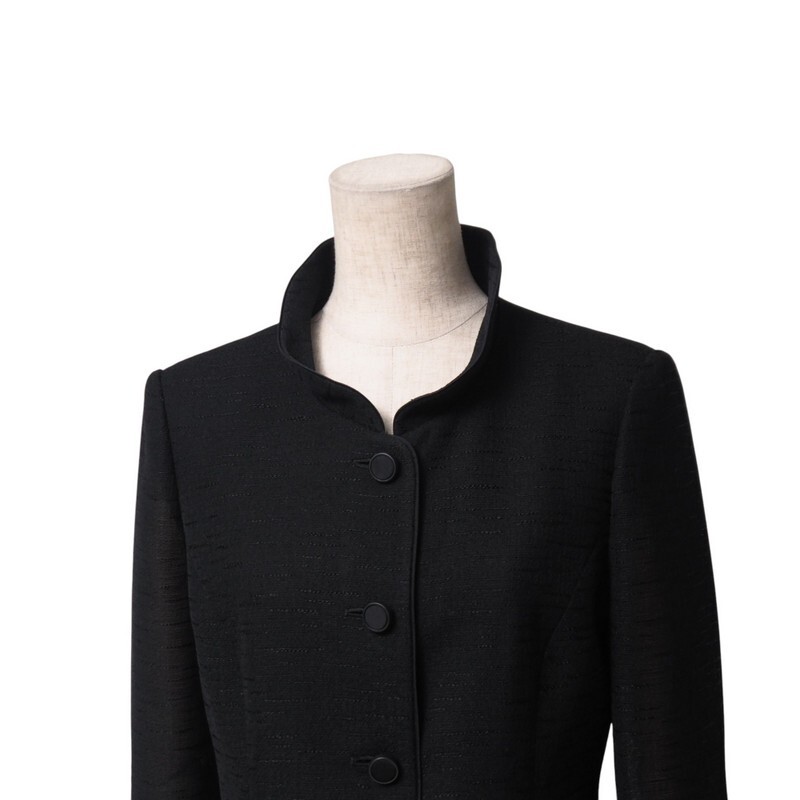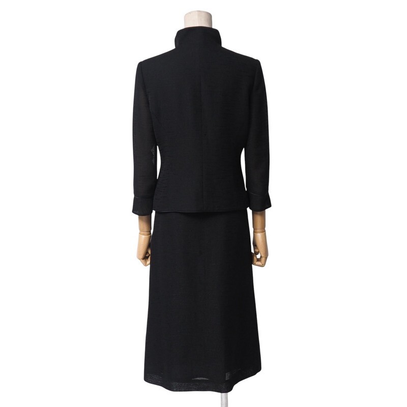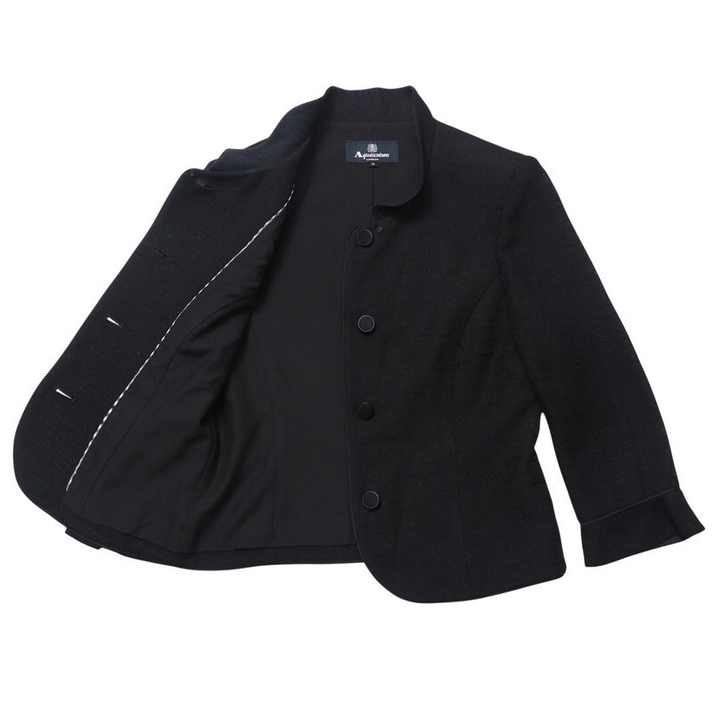 TJ4116●アクアスキュータム*冠婚葬祭*フォーマル セットアップスーツ*喪服*スタンドカラージャケット*膝丈スカート*サイズ7*ブラック | |||