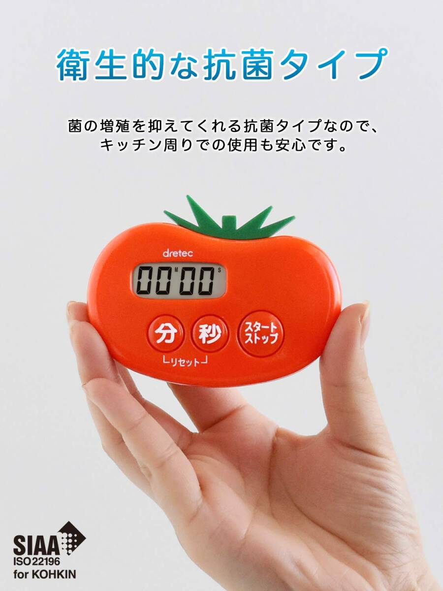 ・【抗菌タイプ】人気のとまとタイマーが抗菌仕様(JIS Z 2801準拠)になってリニューアル!雑菌の繁殖を抑えてくれるので、料理中に何度も触ったりしても衛生的で安心して使用できます。