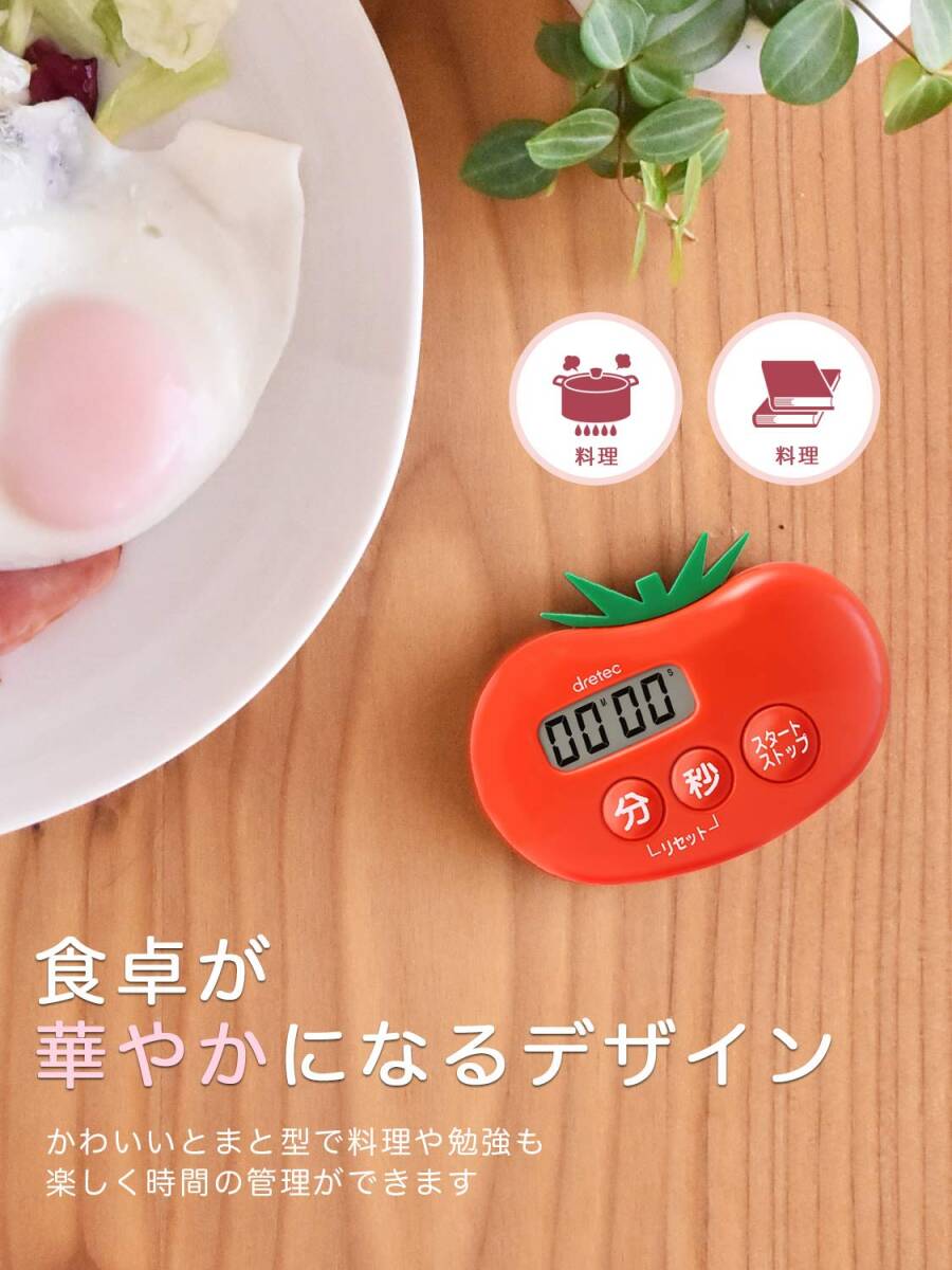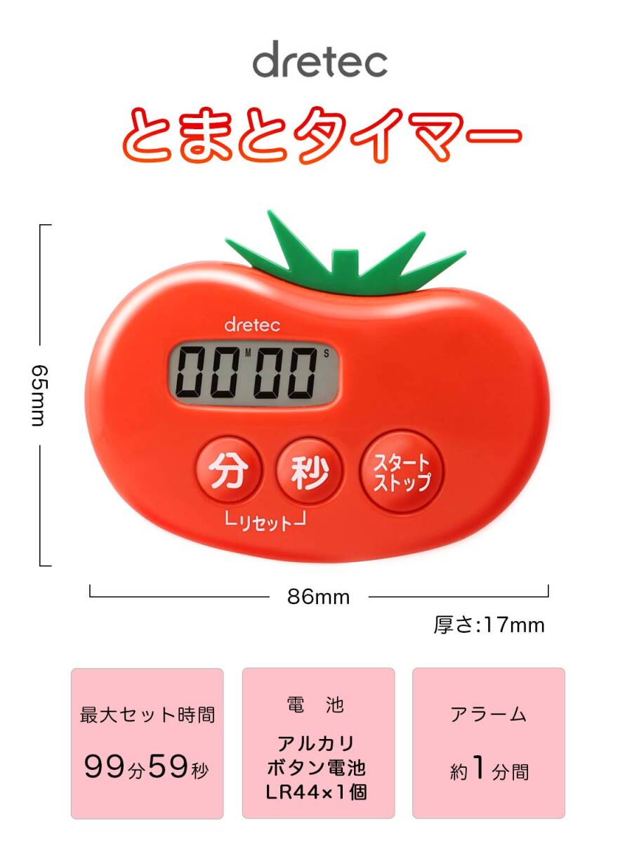 dretec(ドリテック) 【抗菌タイプで衛生的】とまとタイマー デジタル 99分59秒 T-535RD レッド