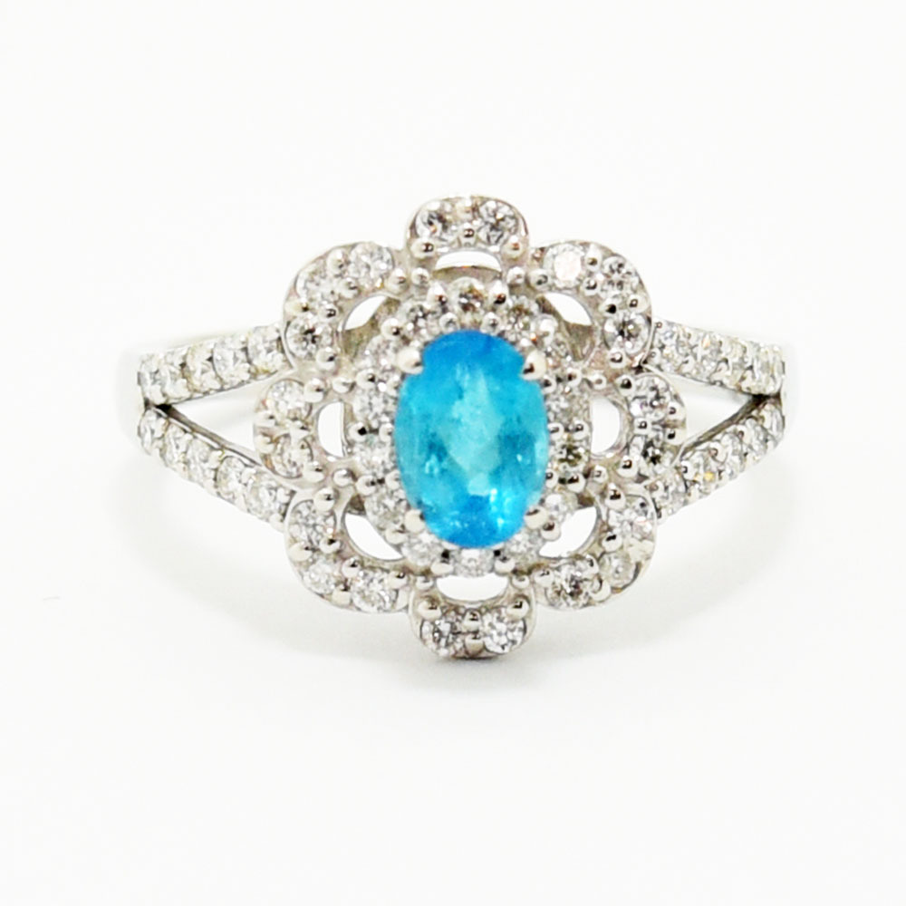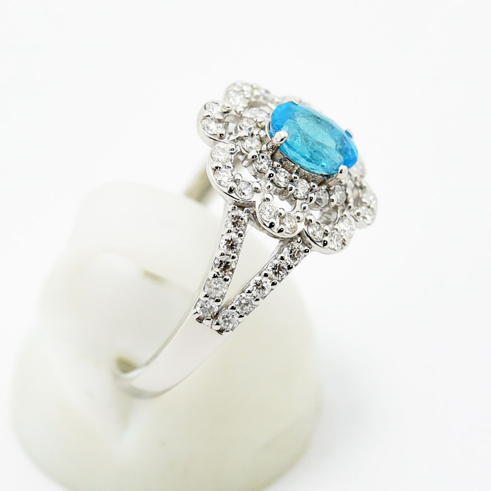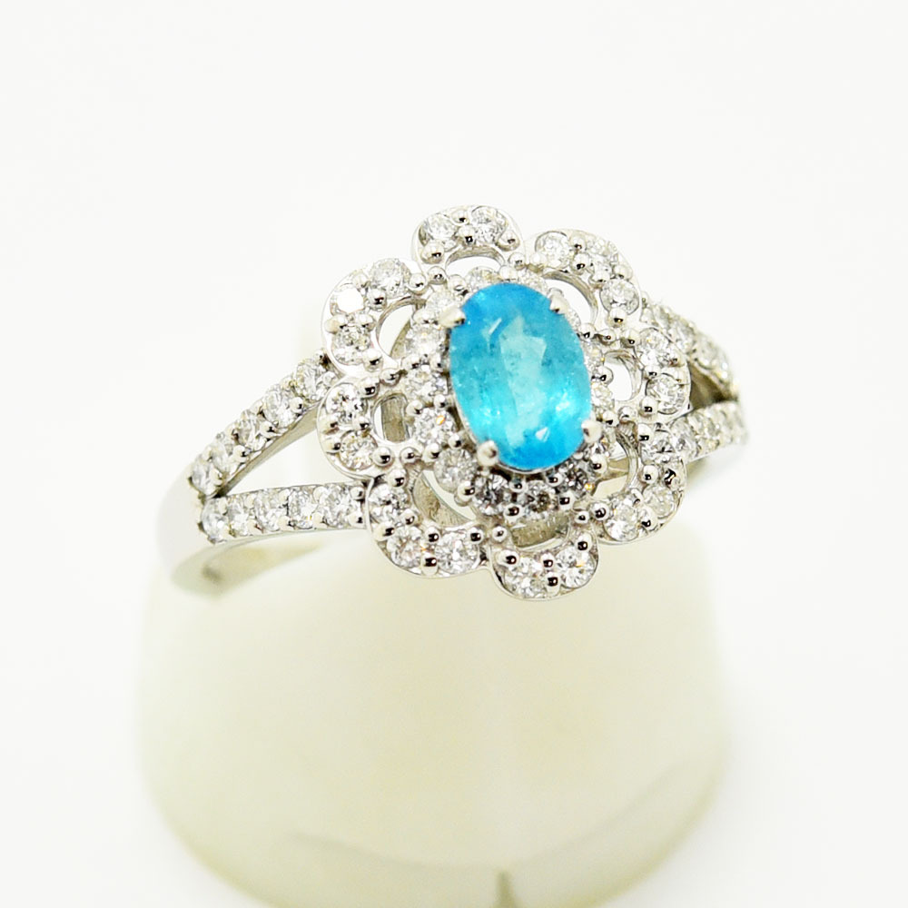 瑞々しい透明感のパライバトルマリンにダイヤモンドが煌めく、爽やかな印象のリングです。 新品仕上げ済みです。 |