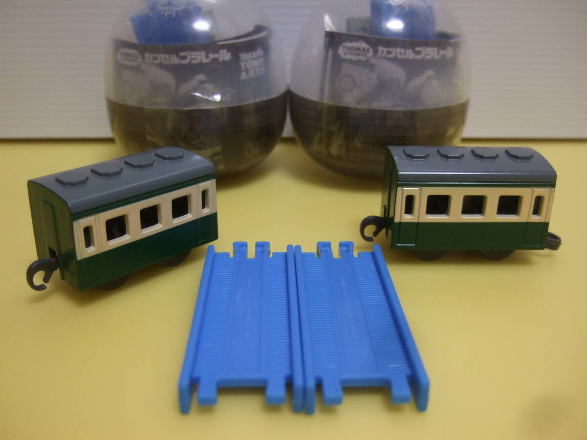 カプセルプラレール トーマスシリーズ「すごいぞ!はやいぞ!急行列車編」(2023年)の急行客車2両(緑 ゴードン用)(直線レール付き) 新品(カプセル未開封品)です。