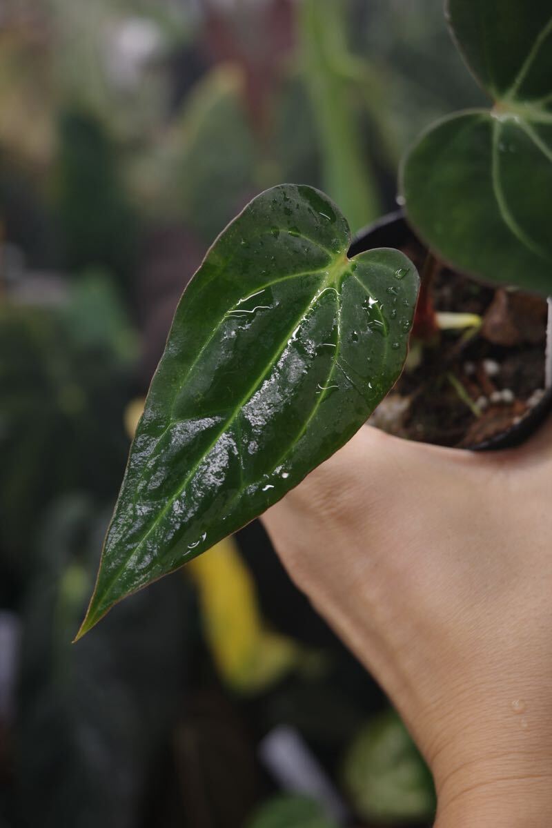 交配した苗を木村園芸さんで育てていただき、現地で良いものをピックアップしています。ダークリーフにcarlablackiaeの雰囲気を感じる葉脈がのっており、両親の特徴がうまく混ざっているように思います。