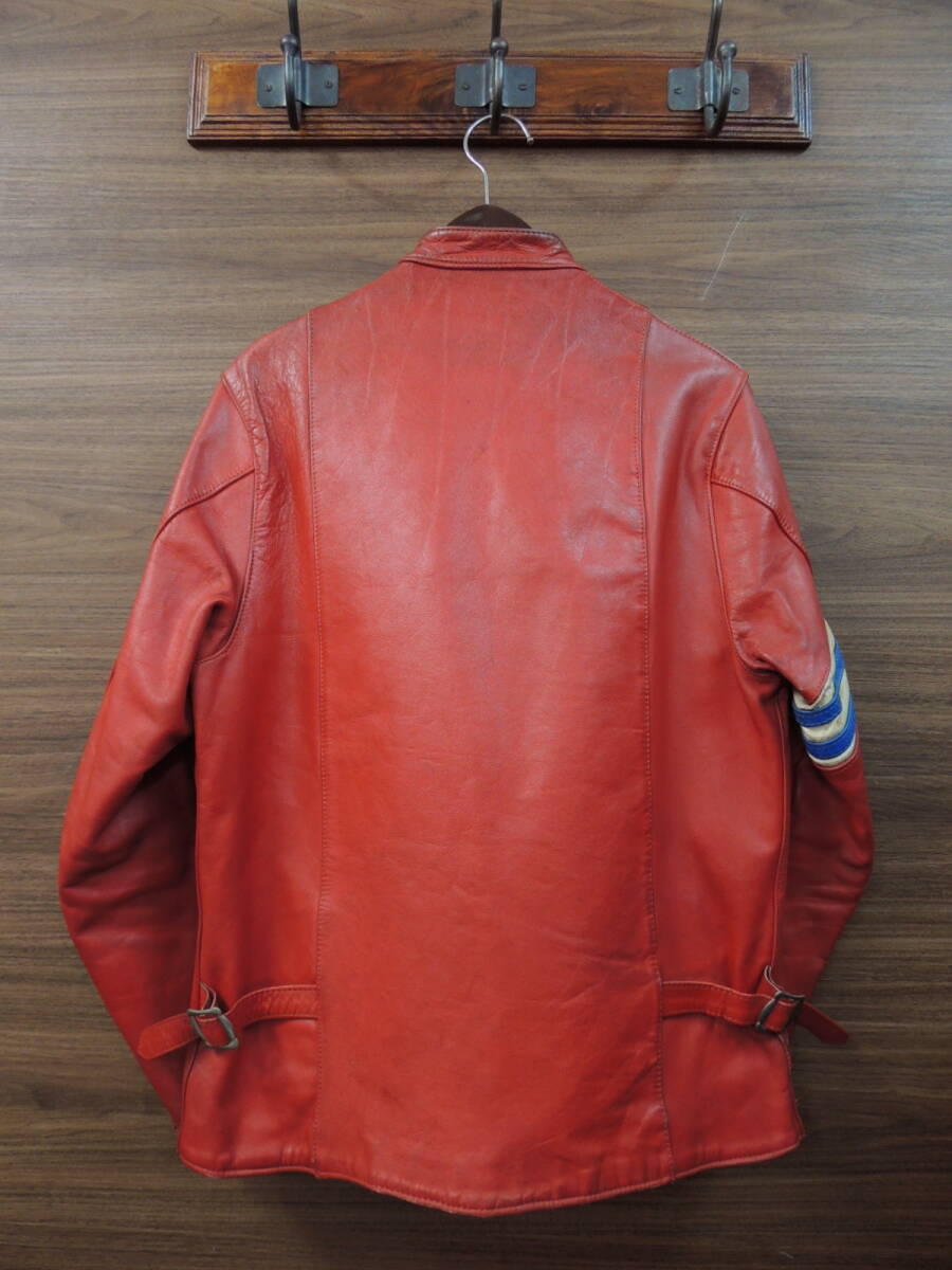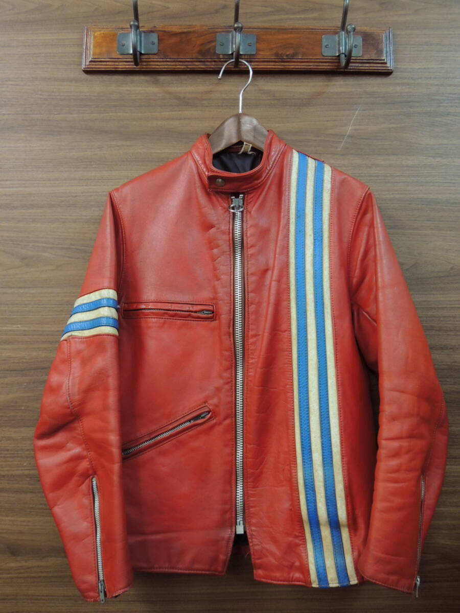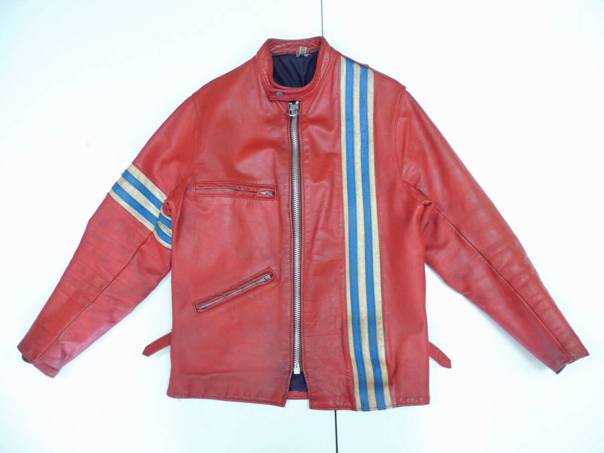 70S VINTAGE TT leathers 英国製 ストライプ シングル レザー ライダース ジャケット ロンジャン 赤 レッド Made In England ヴィンテージ