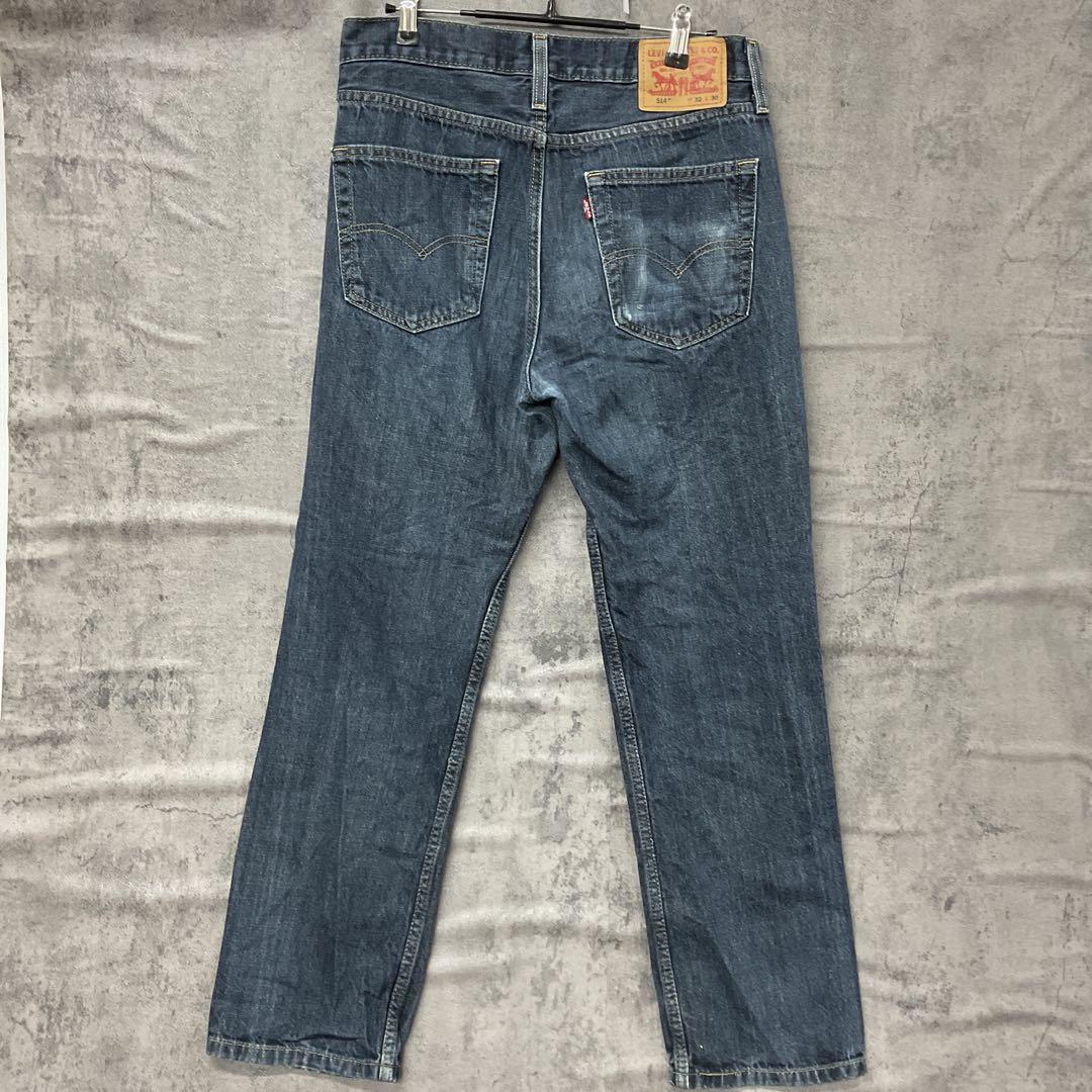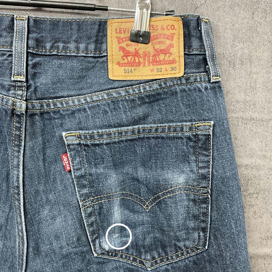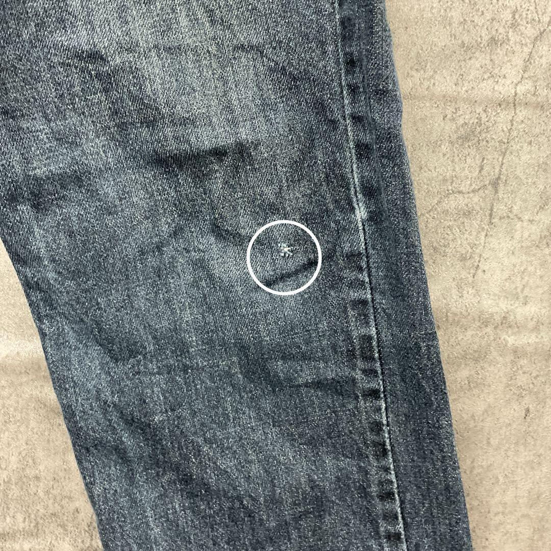 右太もも上部・左ひざに小さな穴、左ポケット上部にシミ、後ろの右ポケットに色落ちとスレがあります。