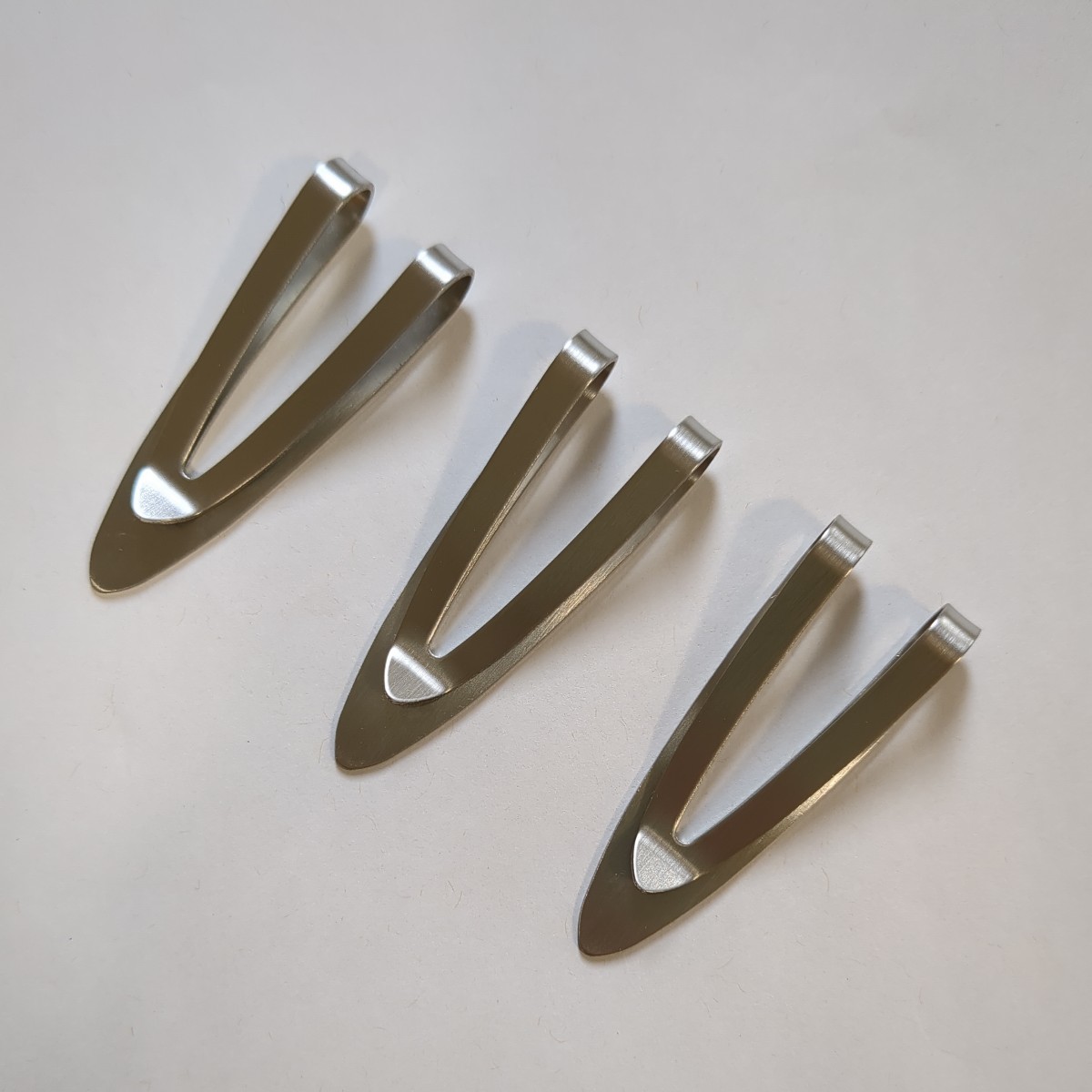 新品・未使用の、マネークリップ V字デザイン シルバーです。