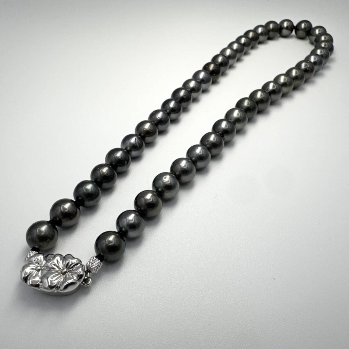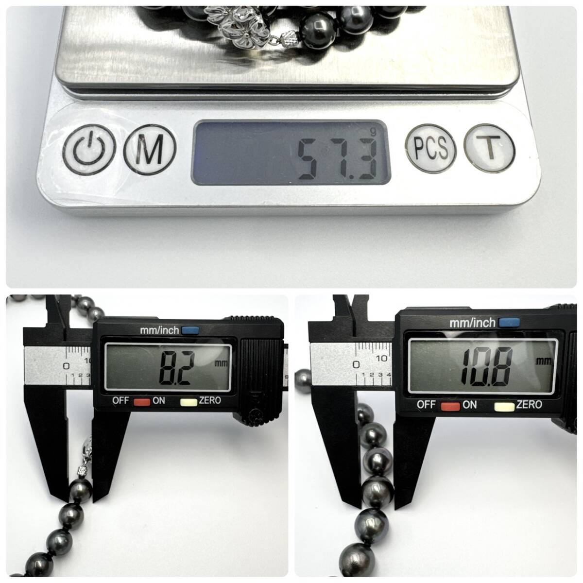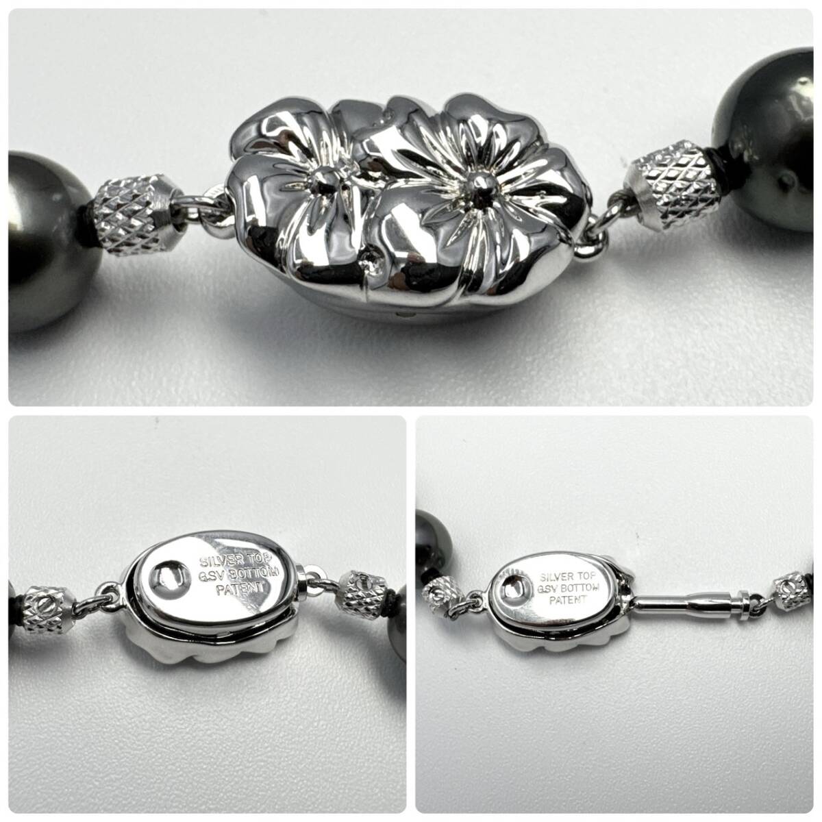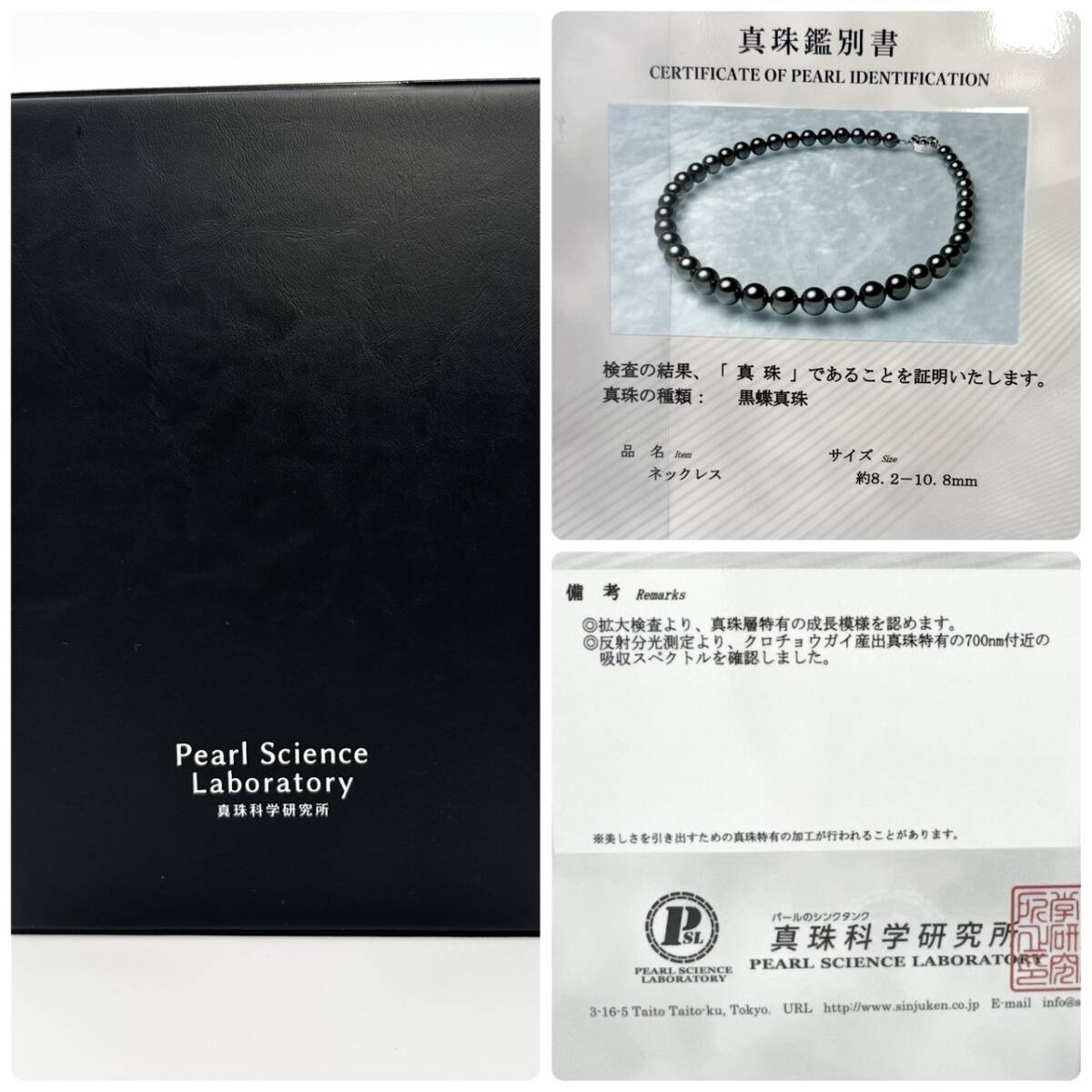【真科研鑑別書】 オーロラピーコック 8.2-10.8mm 黒蝶真珠 ネックレス SILVER 45.0cm 57.3g 真珠科学研究所 パール クロチョウ 2S