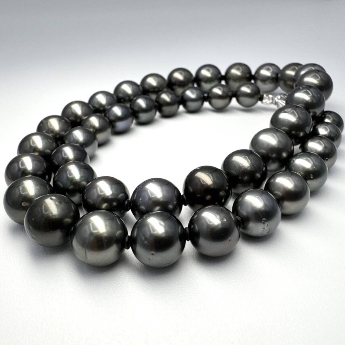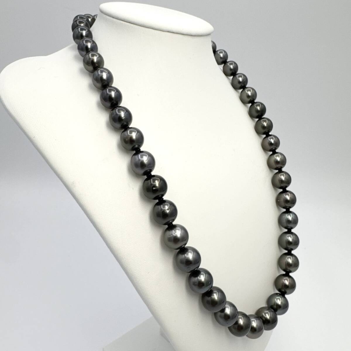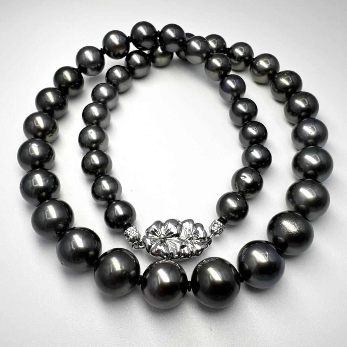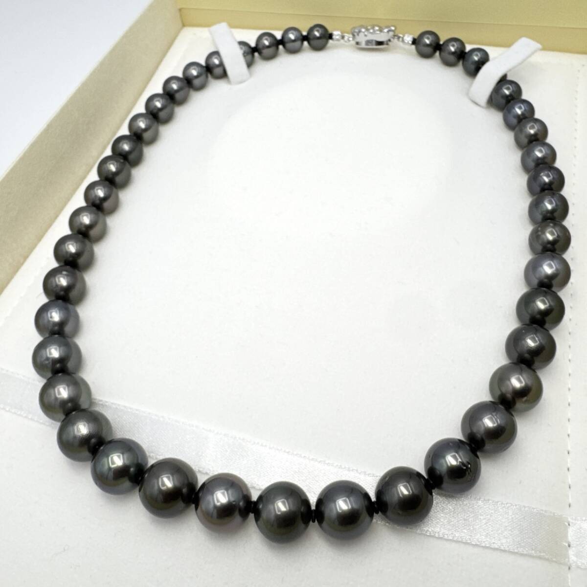【真科研鑑別書】 オーロラピーコック 8.2-10.8mm 黒蝶真珠 ネックレス SILVER 45.0cm 57.3g 真珠科学研究所 パール クロチョウ 2S