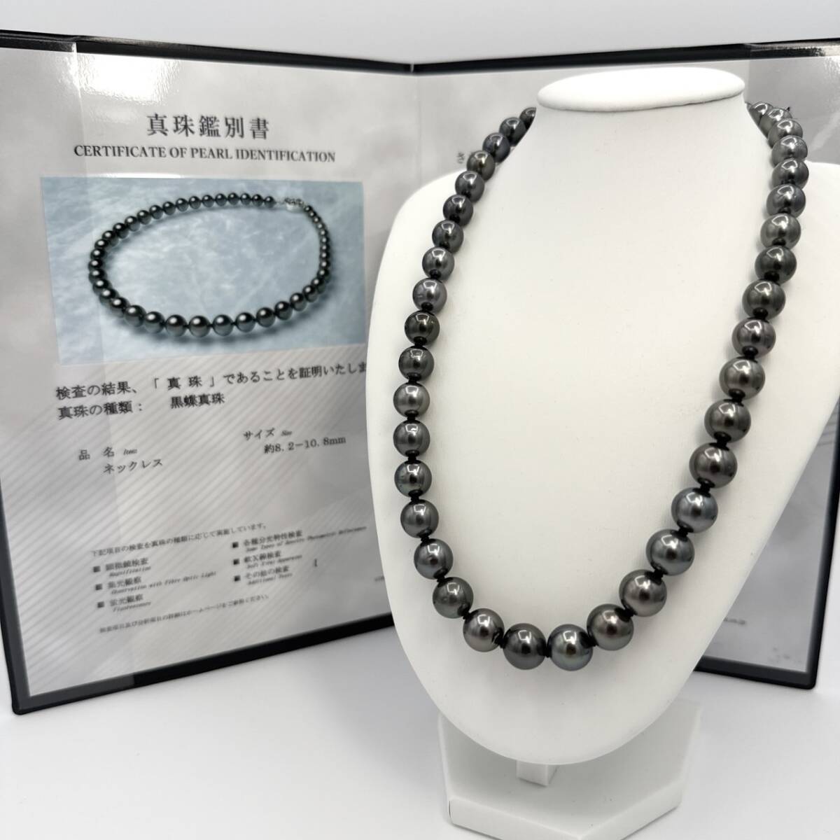 ● 【真科研鑑別書】 オーロラピーコック 8.2-10.8mm 黒蝶真珠 ネックレス SILVER 45.0cm 57.3g 真珠科学研究所 パール クロチョウ 2S-38100