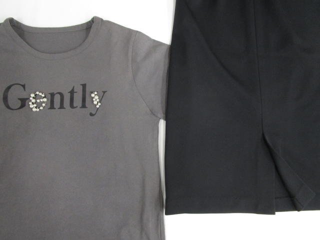 半袖Tシャツ+ひざ丈タイトスカート コーディネート上下2点セット M相当 グレー地 ブラック 英字/ブラック きれいめ・シンプル系 40代・50代~