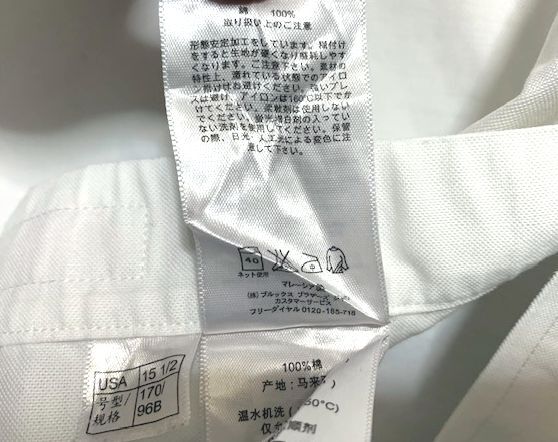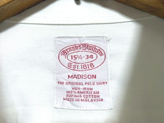 ★ BROOKS BROTHERS ブルックスブラザーズ スーピマコットン100% オックスフォード ボタンダウンシャツ ホワイト 15 1/2-34