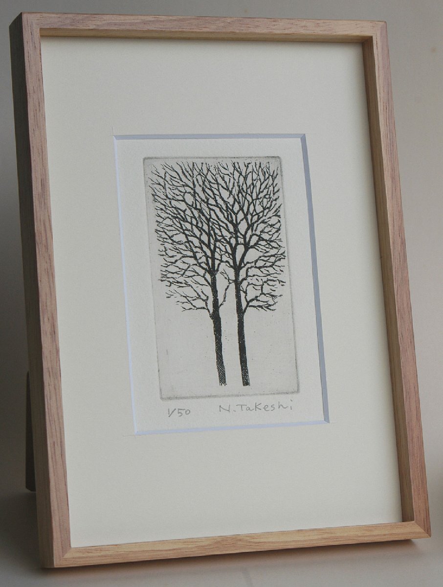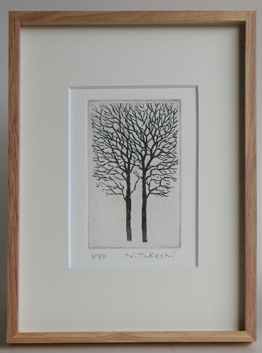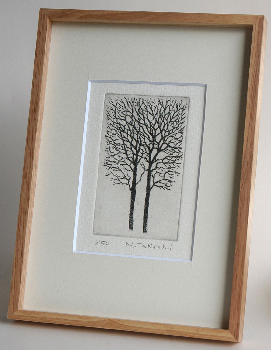 二本の樹・2023/銅版画・エッチング/新品、額あり