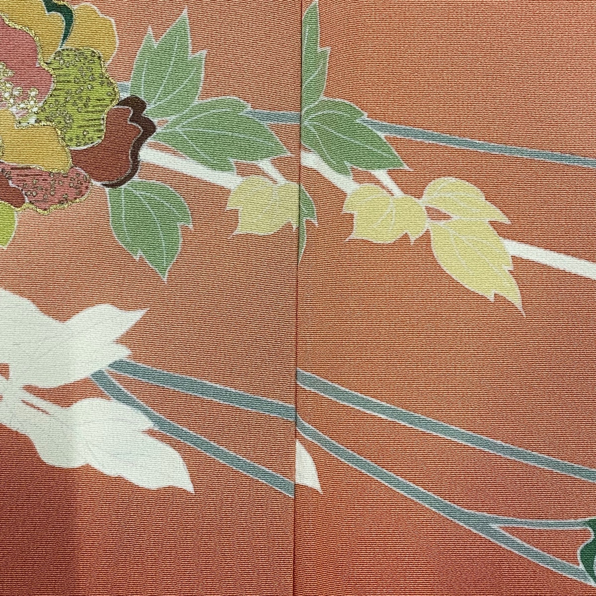| 訪問着 秀品 牡丹 金彩 ぼかし サーモンピンク 袷 身丈170.5 裄丈69 L 正絹 【中古】 |