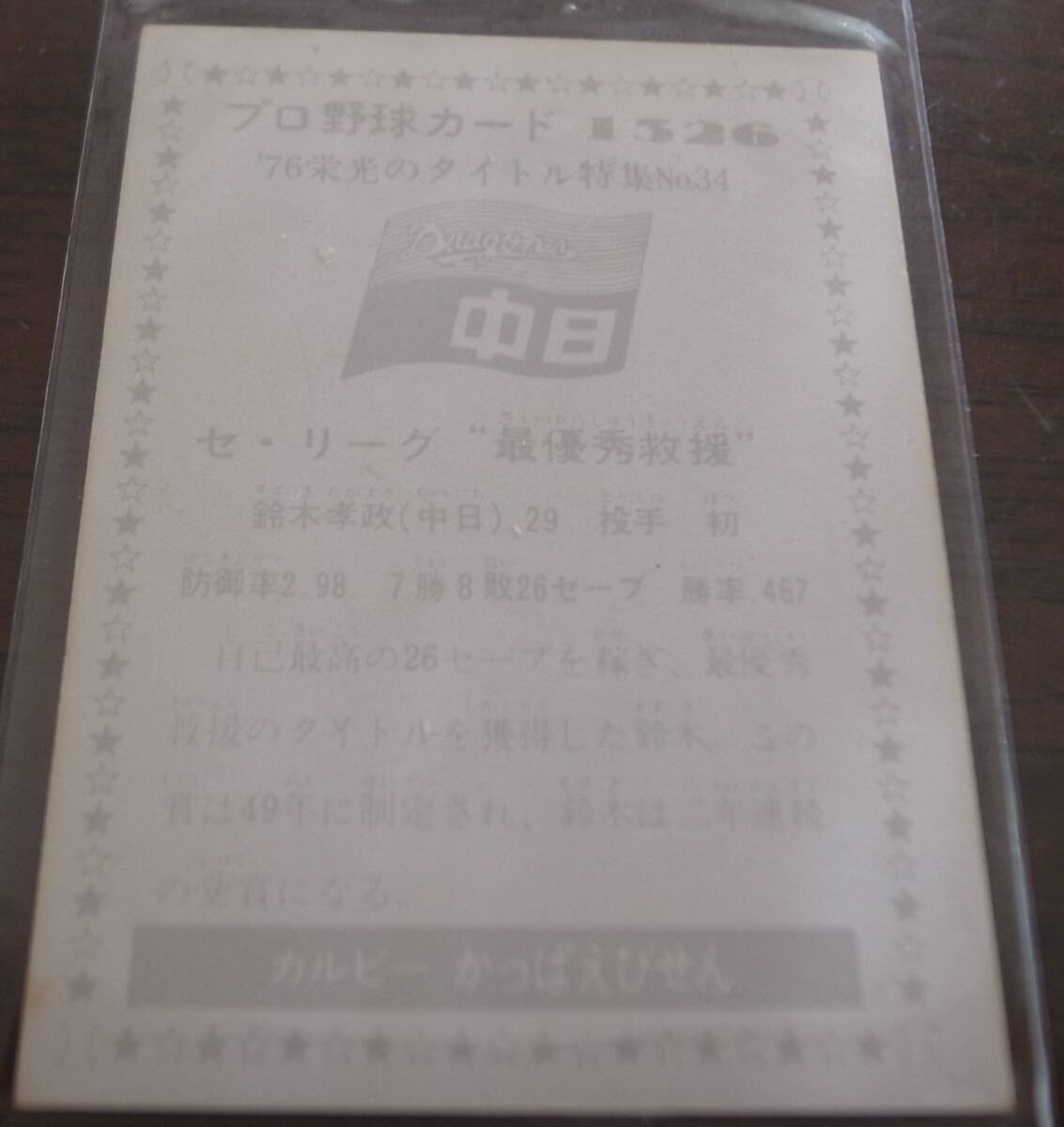 ■カルビープロ野球カード1976年/No1326/’76栄光のタイトル特集Np34/セ・リーグ最優秀救援/鈴木孝政/中日ドラゴンズ | ||