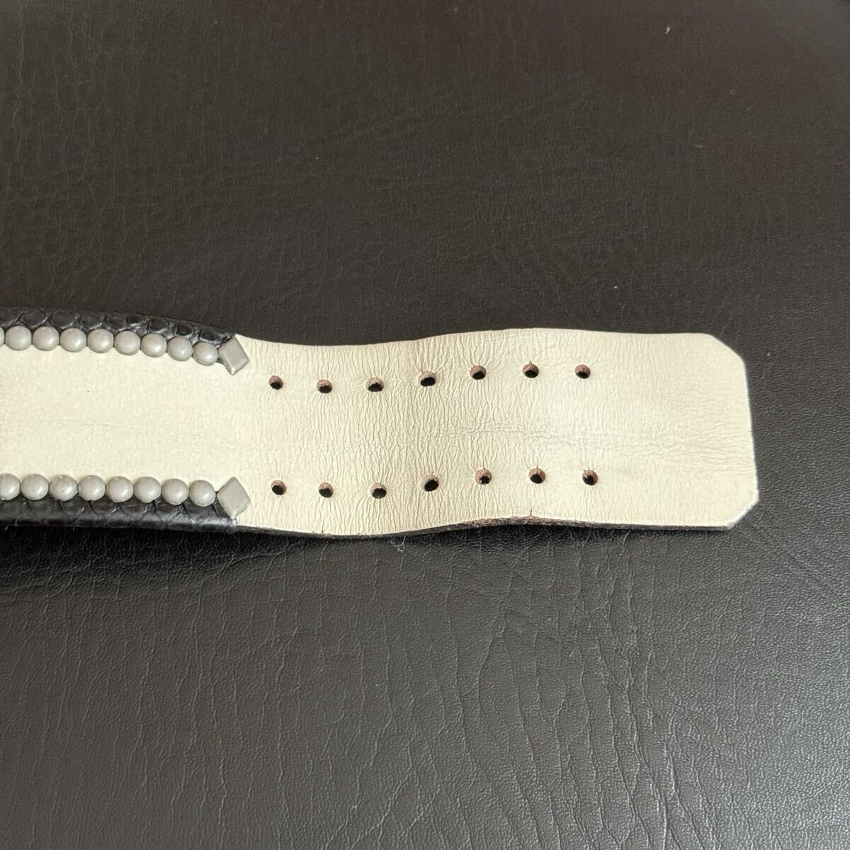 スタッズに青錆、くすみ、レザーの痛みがあるため、ジャンク品としてお考え下さい。