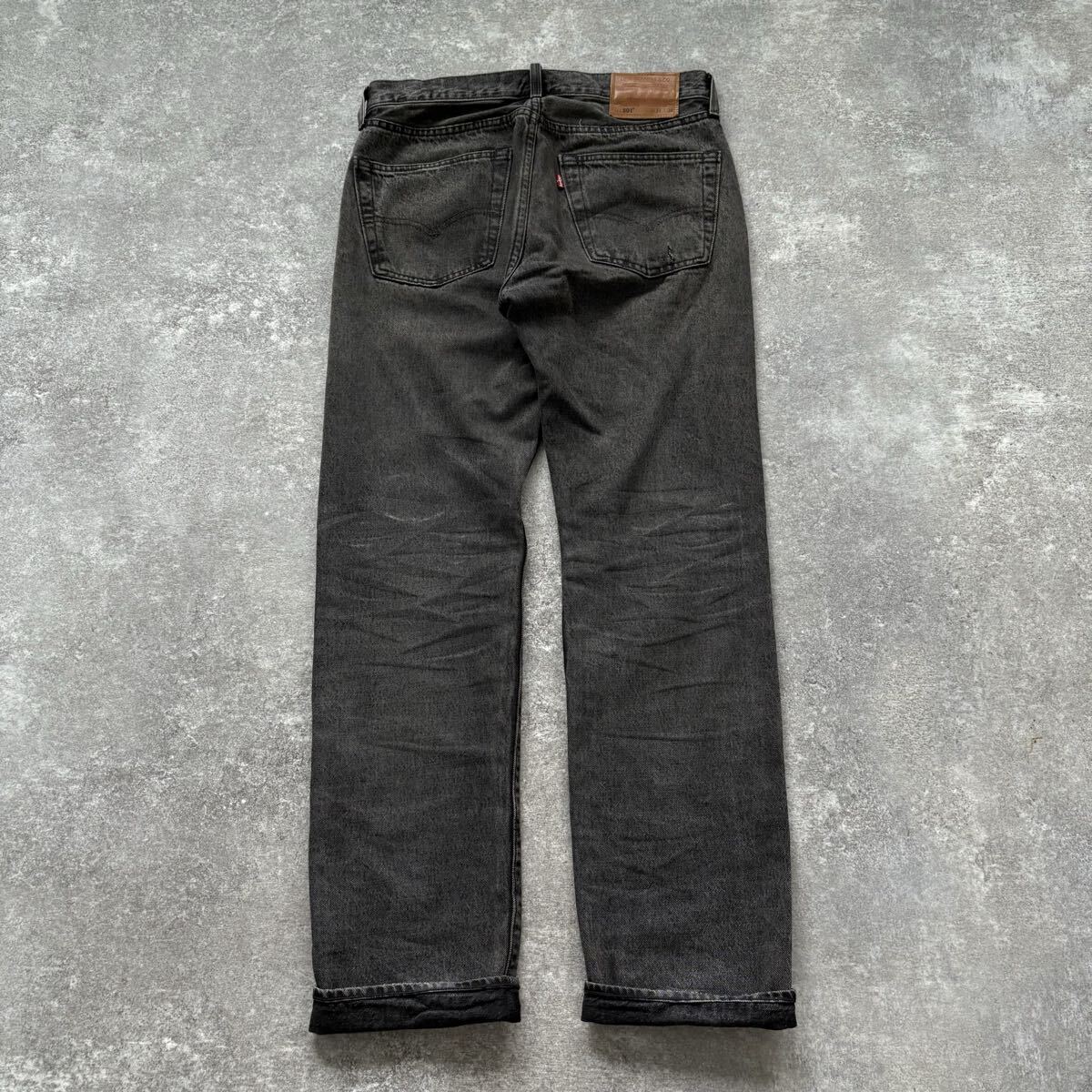 王道の501シルエットに、赤耳の誇りを宿しつつ、ダメージ加工の独特な風合いがプラスされています。