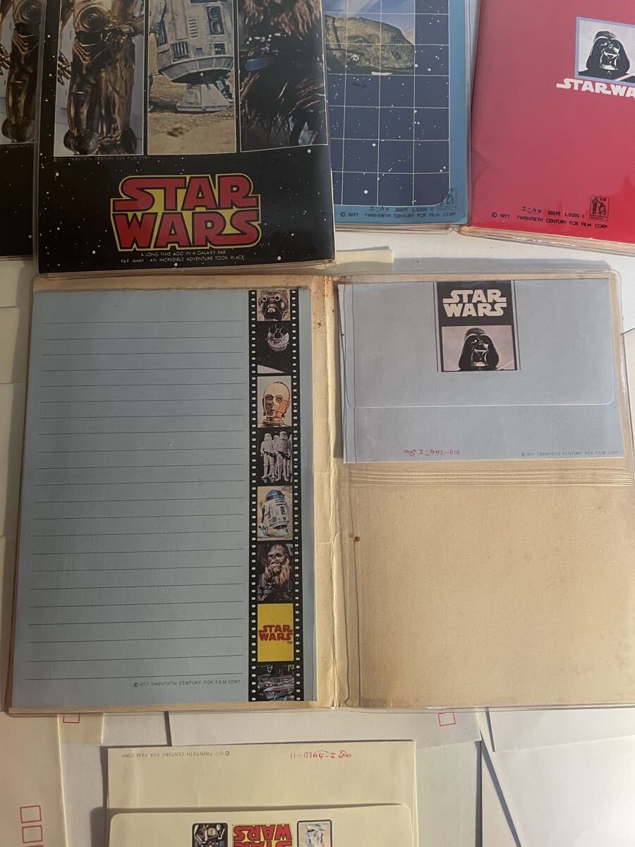 1977年、映画公開当時に販売された STAR WARS ファイル付き便箋&封筒セット 全5種類コンプリート のまとめ売りです。