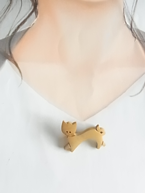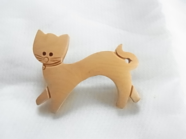 ビンテージ/ヴィンテージ 木製 ウッド 可愛い猫ちゃんのモチーフ ねこ ネコ キャット 可愛く歩いている レトロのブローチ♪♪