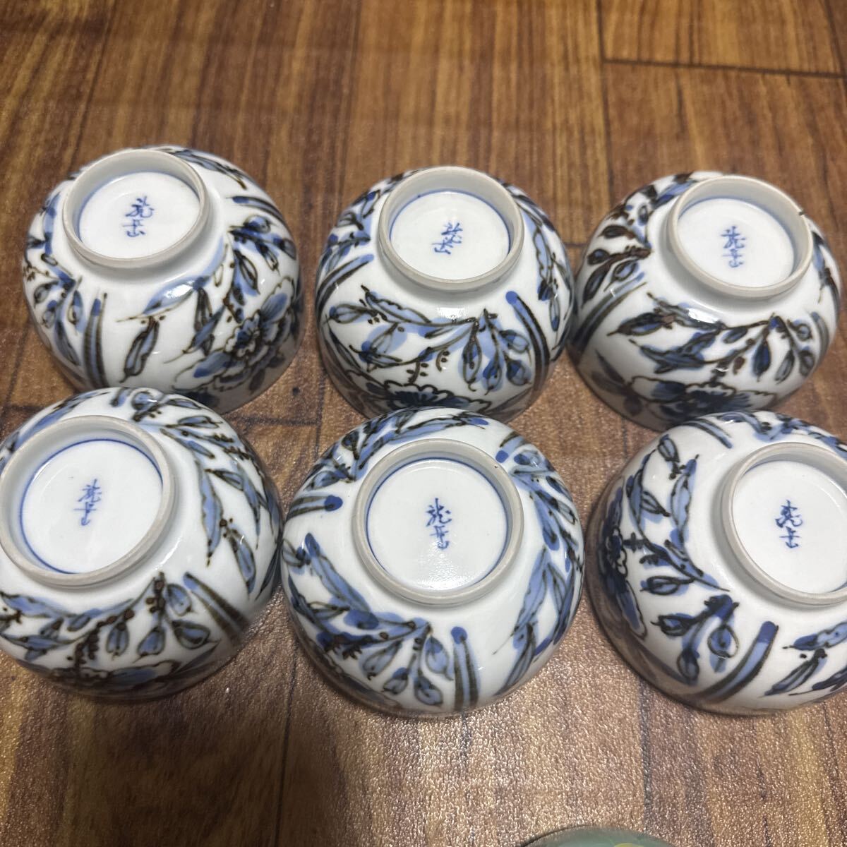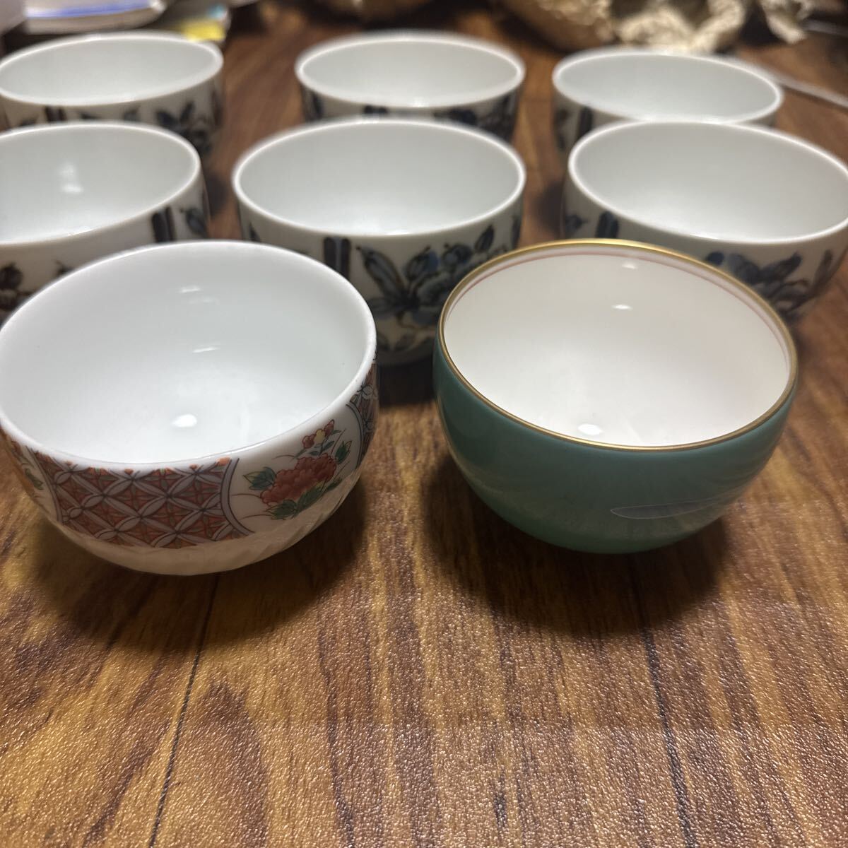 商品名 : 湯呑み8点セット詳細 有田焼香蘭社の湯呑み1点 有田焼の「西峰窯」の湯飲み1点 染付(そめつけ)の技法を湯呑み6点 有田焼 陶器 茶器
