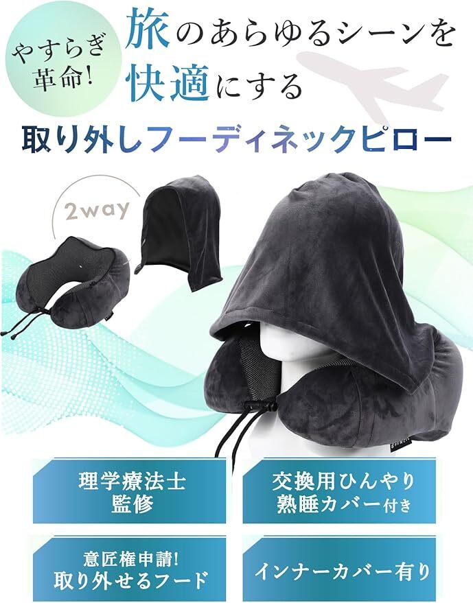 Amazon | 【交換用冷感カバー付き】BANCIL ネックピロー 取り外しフード 交換用ひんやりカバーセット 飛行機 首枕 携帯ピロー (取り外しフーディネックピローグレー+ひんやりカバーセット)