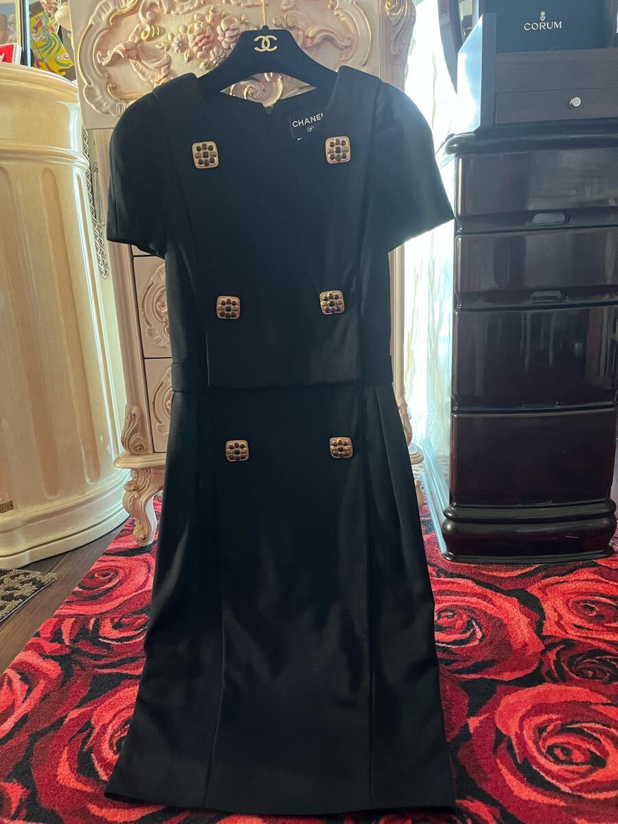 CHANELシャネル ♪グリポアボタンリトルブラックドレス ワンピース