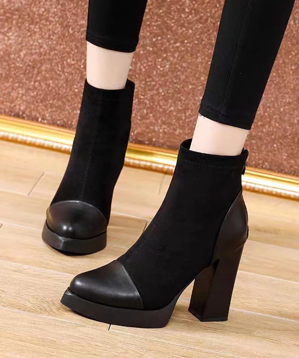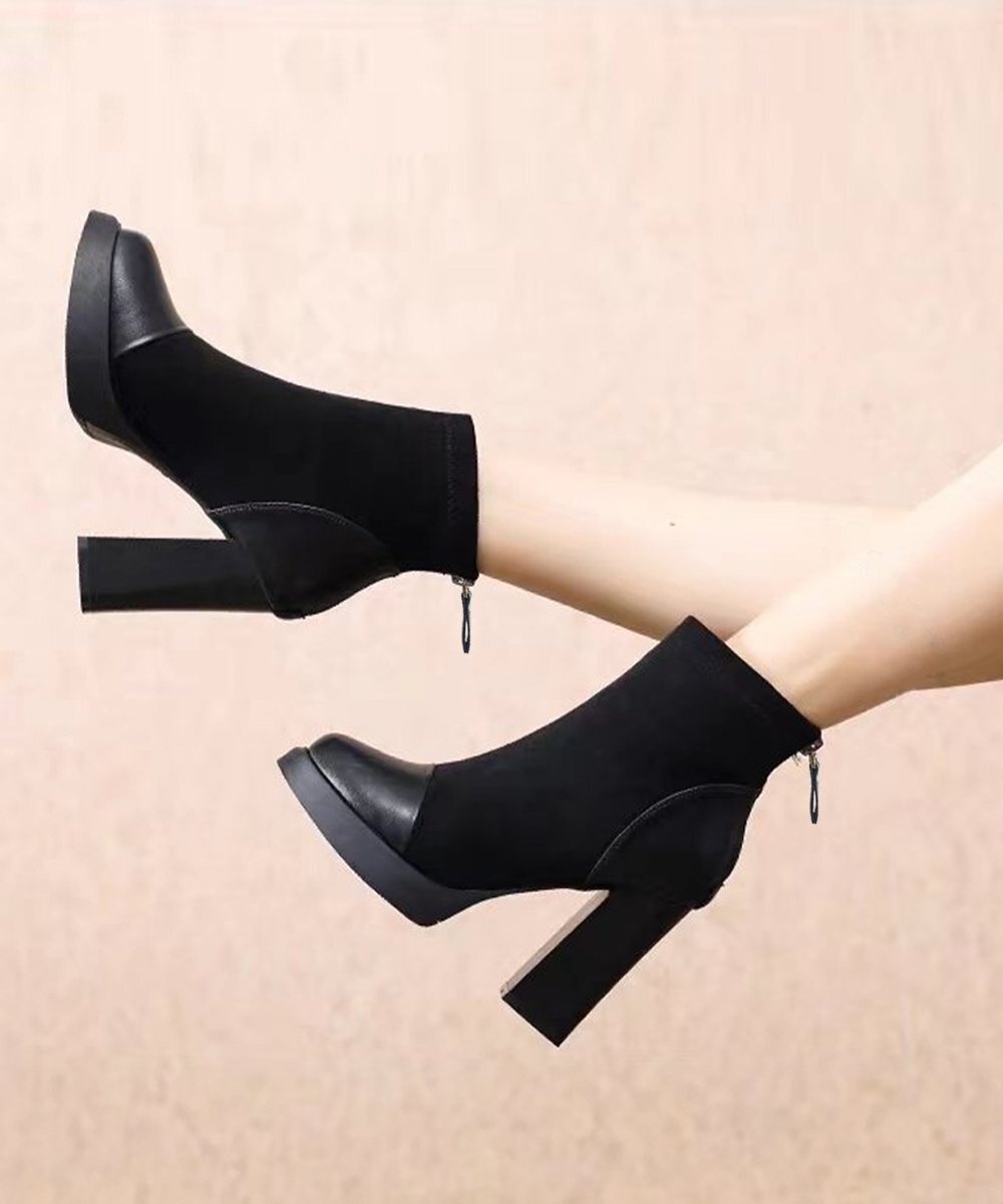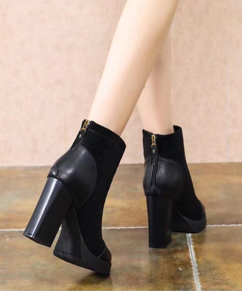 ミドルブーツ 秋冬 ハイヒールブーツ チャンキーヒール靴