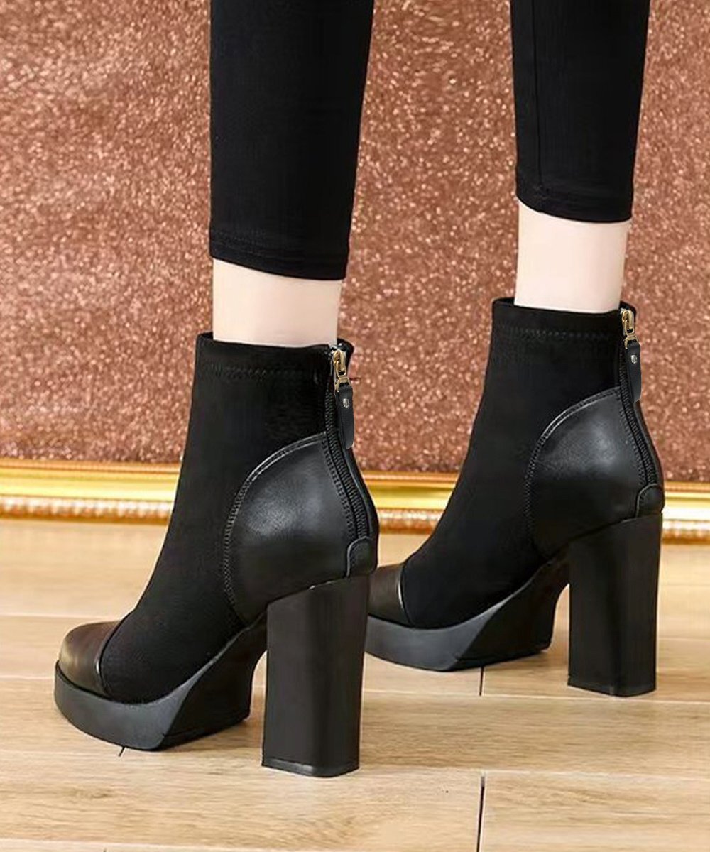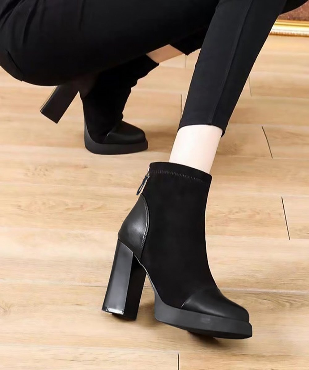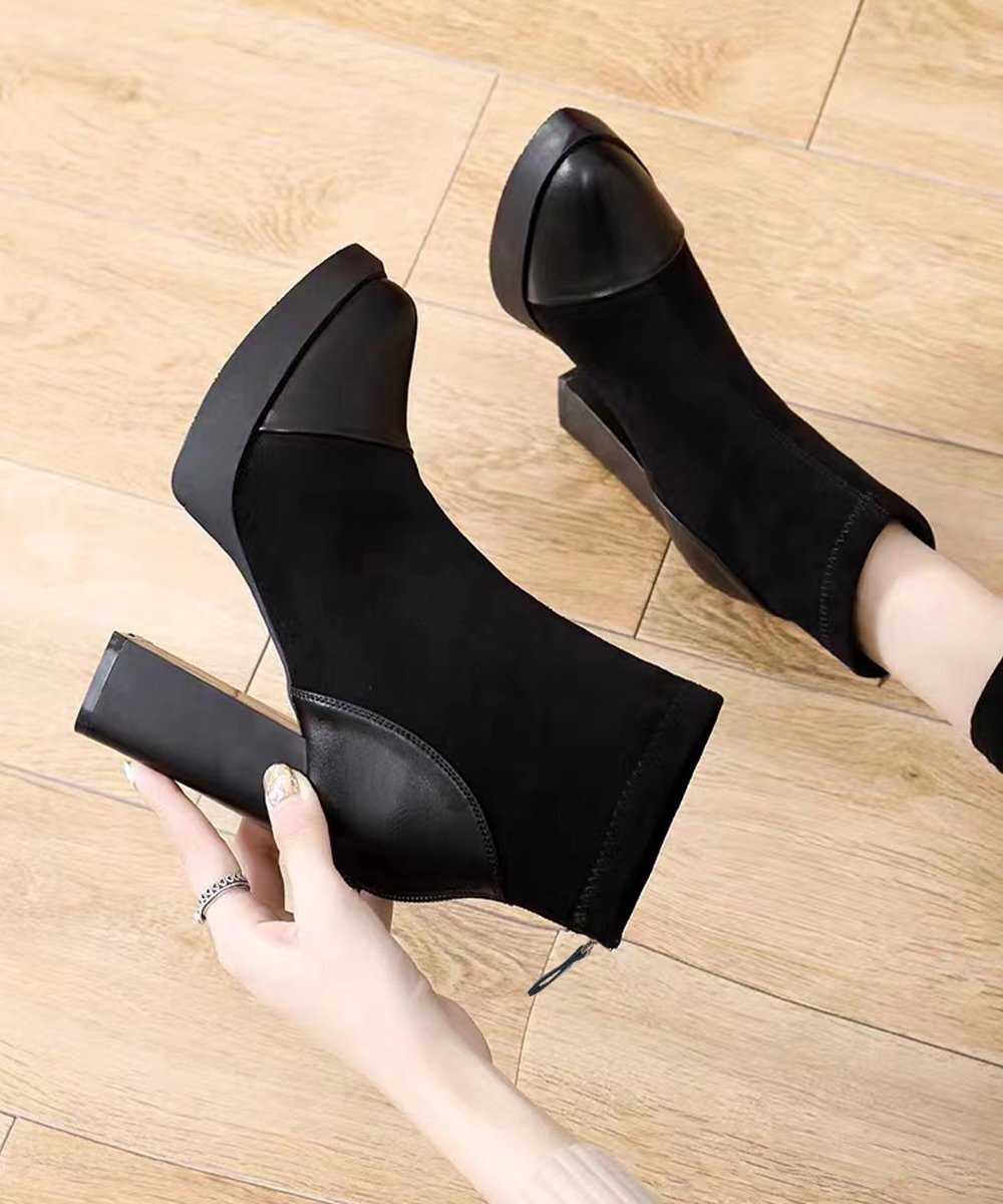 ミドルブーツ 秋冬 ハイヒールブーツ チャンキーヒール靴
