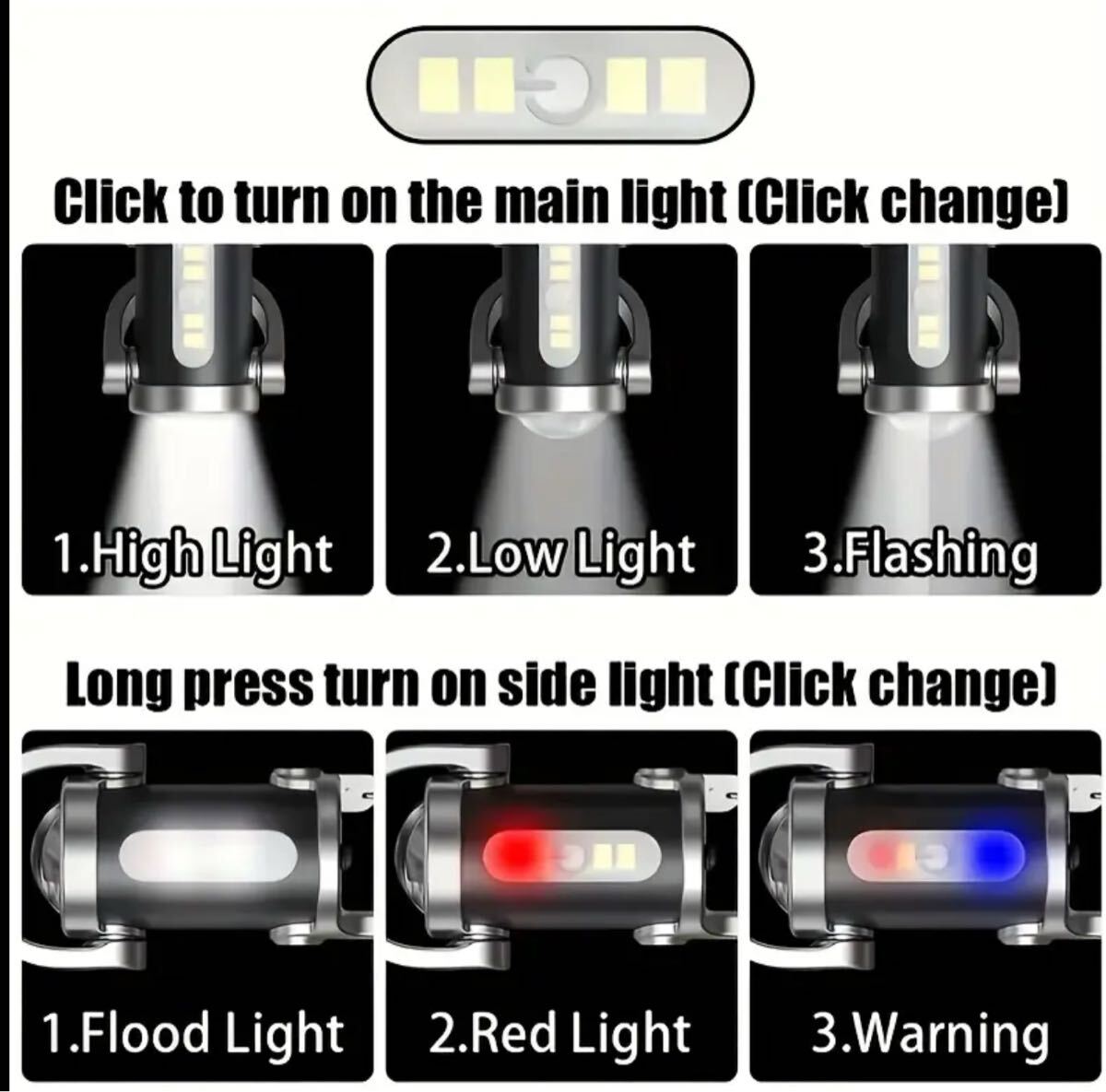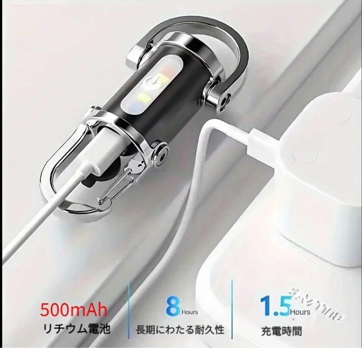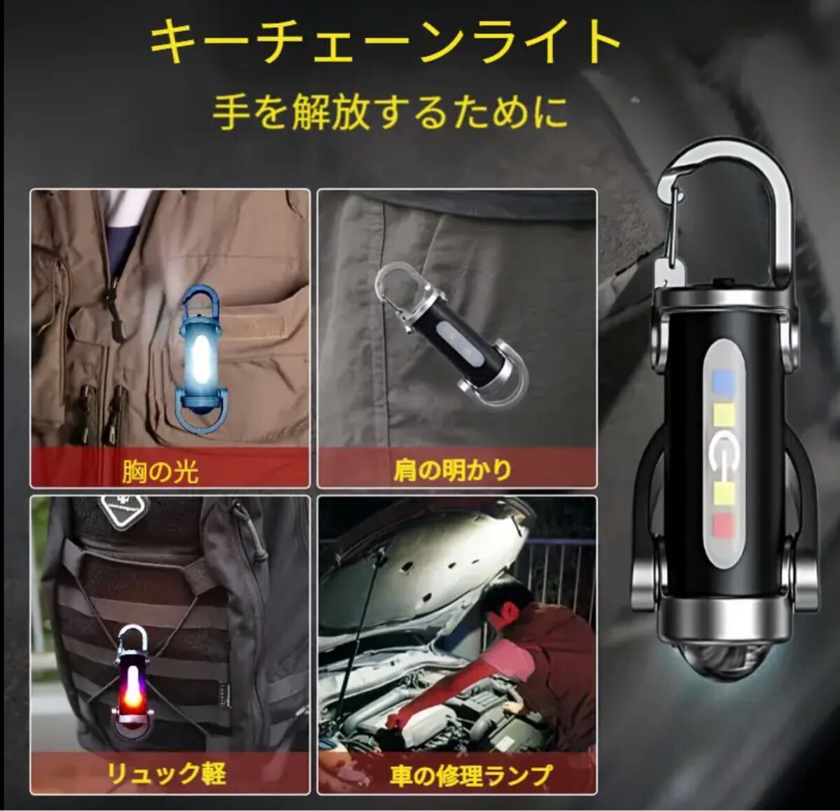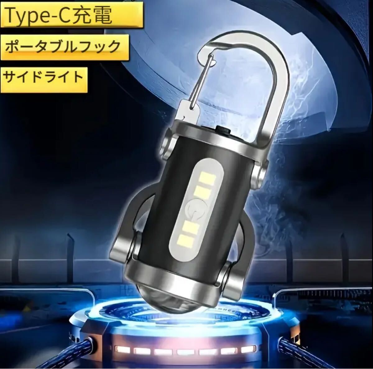 【超明るいLED懐中電灯】充電式LEDキーホルダーライト、ミニCOBフラッシュライト 赤&青警告機能付き。長時間駆動、キャンプ・車修理・ガレージ・アウトドア&日常緊急用に最適。TYPE-C接続、USBケーブル対応