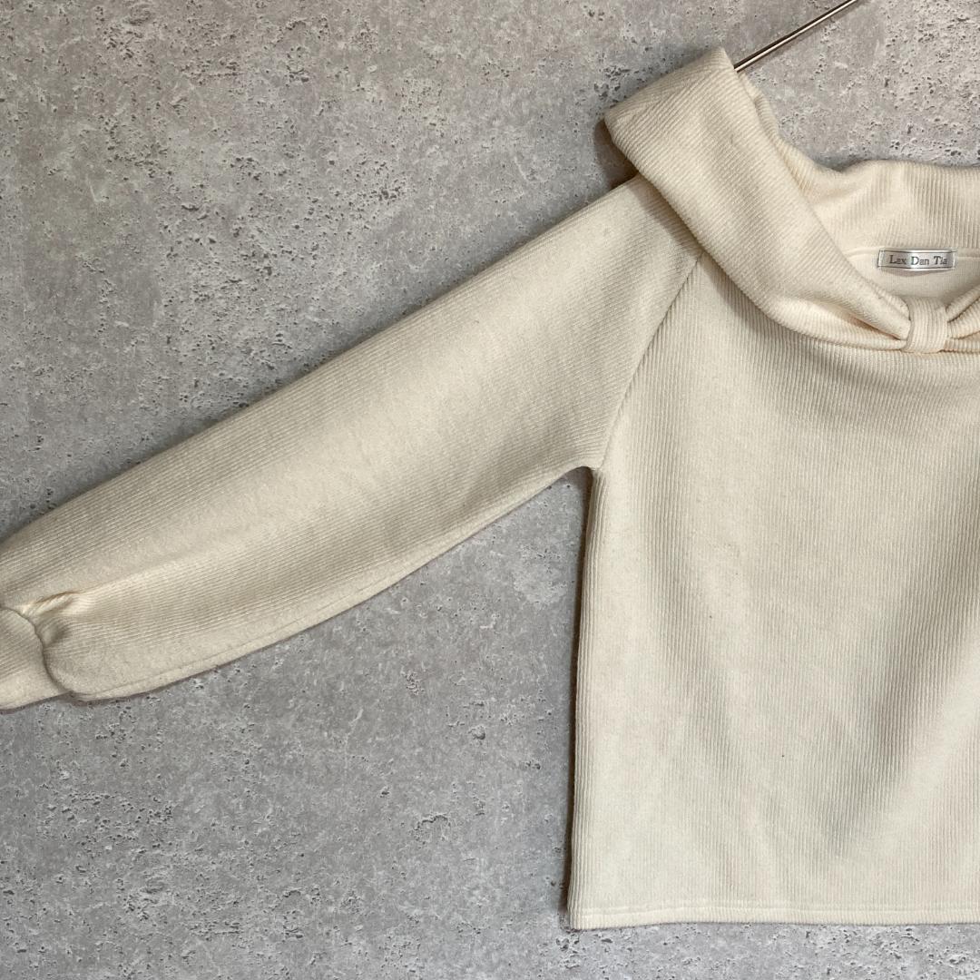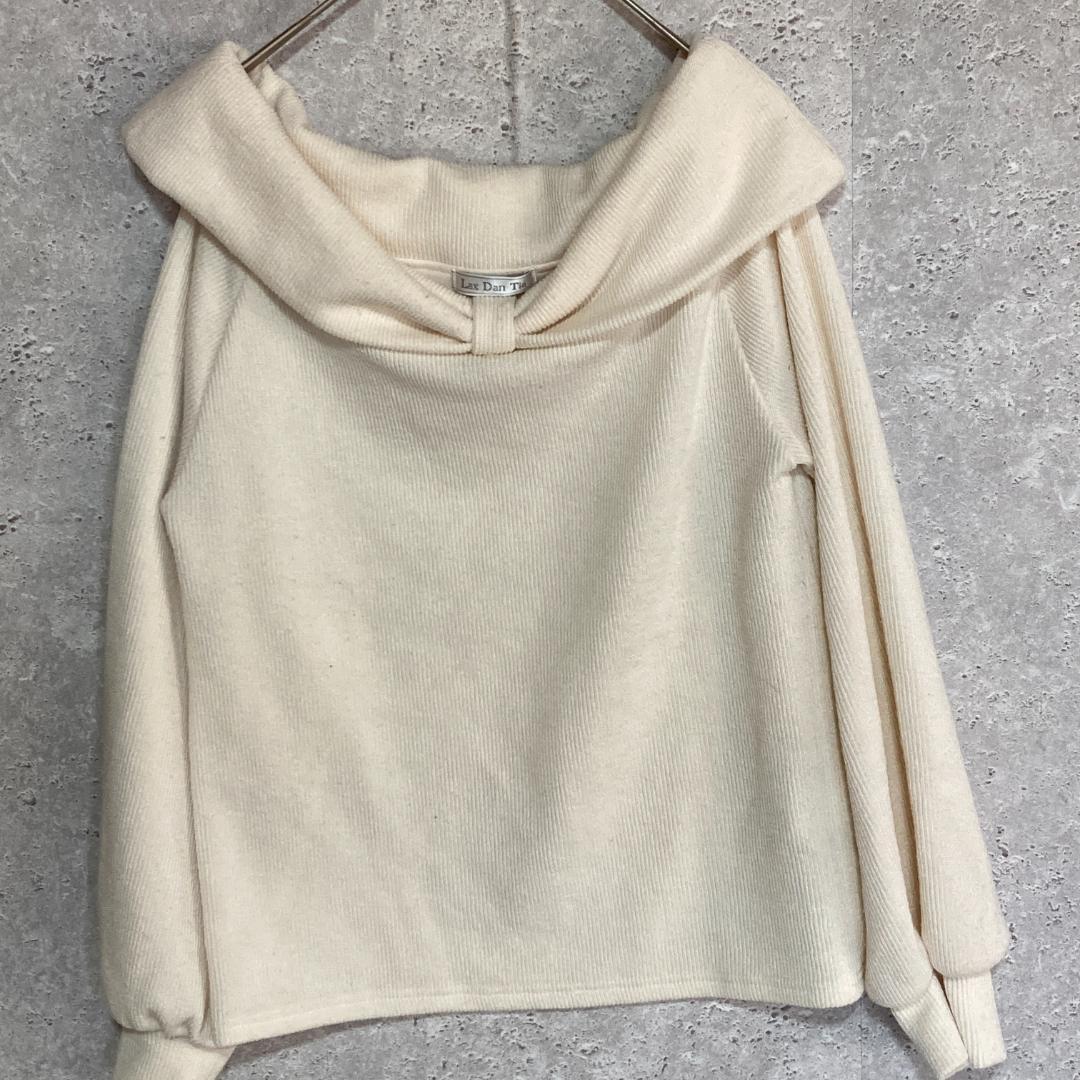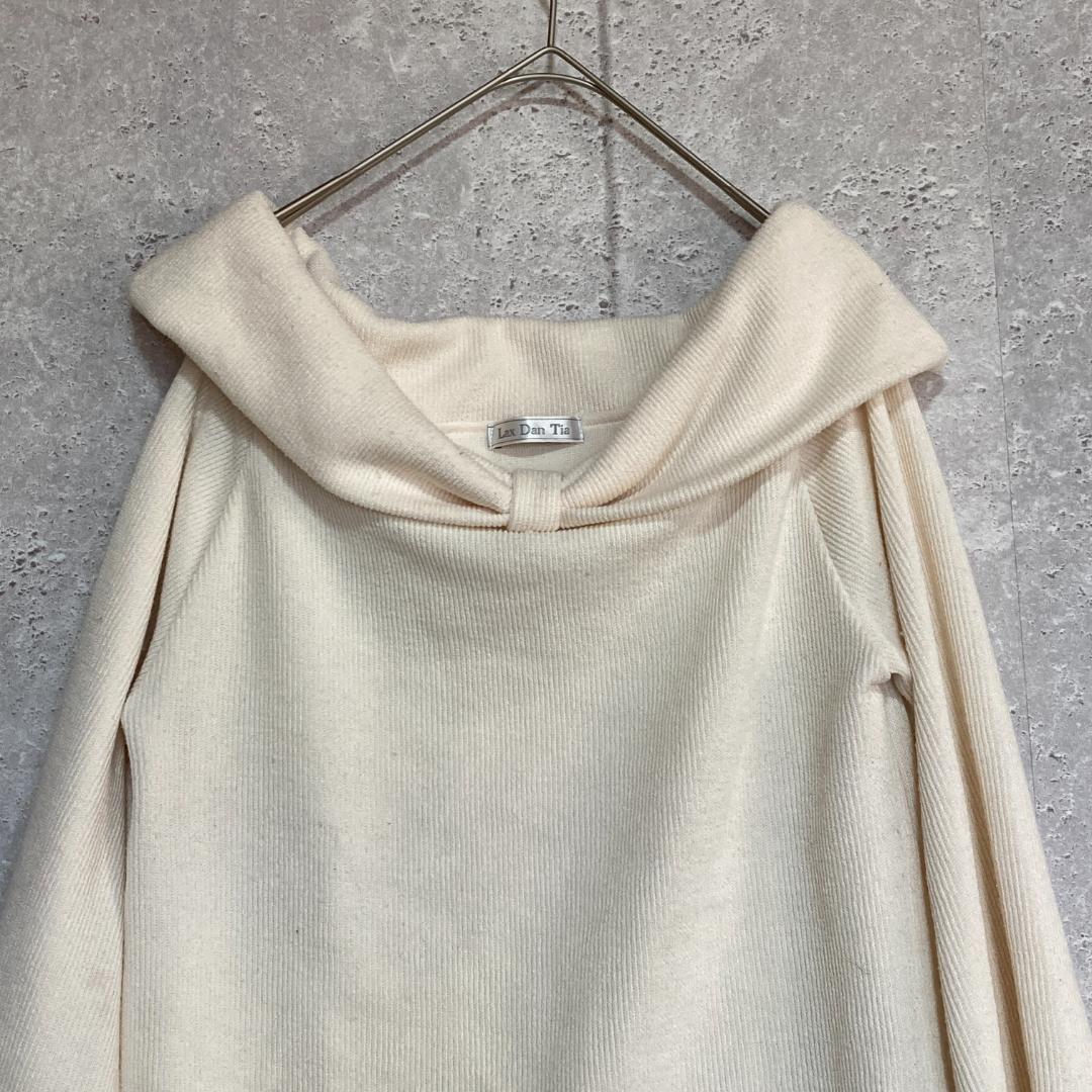 Lax Dan Tia(L)リボンオフショルダーカットソー*伸縮性*透け感*白
