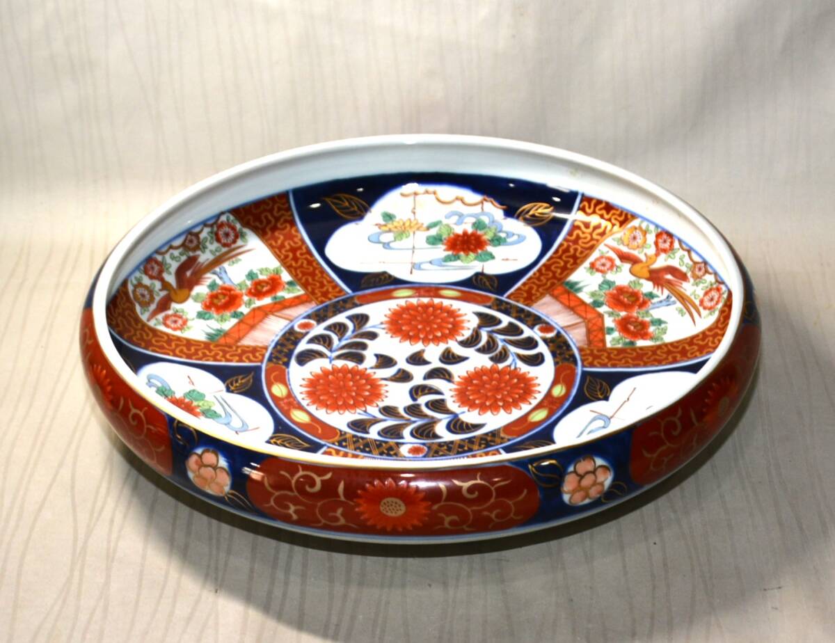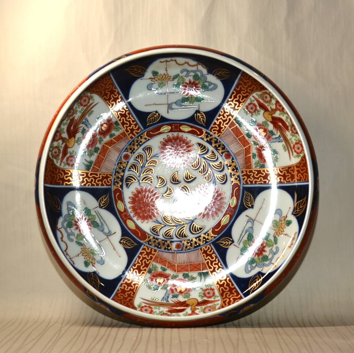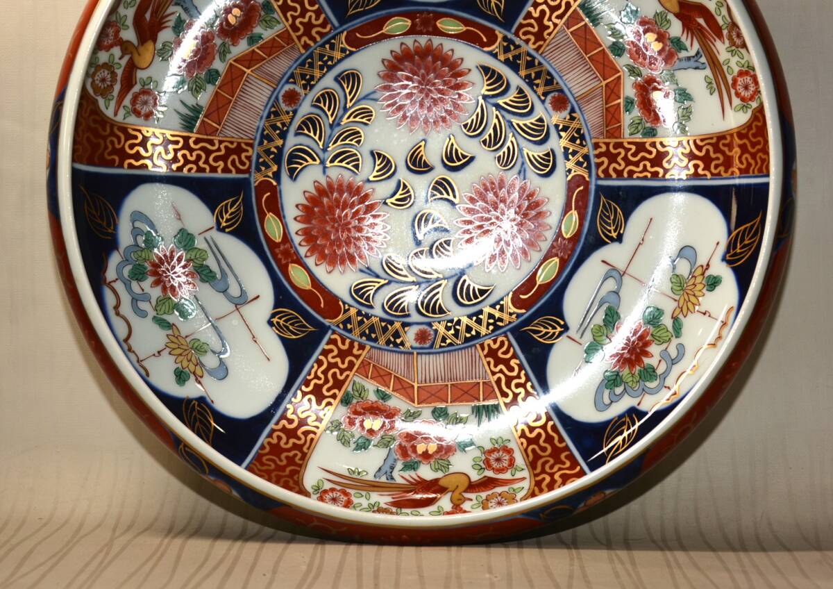 9◆初荷です ◆有田焼 山徳窯 古伊万里写金襴手間取花鳥図盛皿 盛鉢 37cm ◆豪華な絵付けです