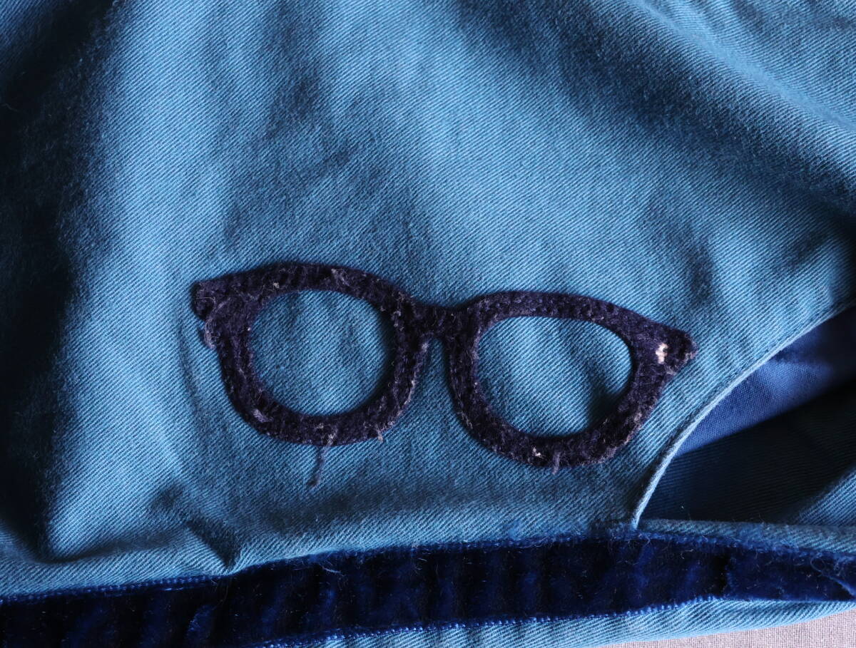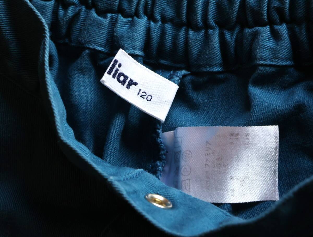 ■ファミリアの120cmサイズのパンツ(青緑色)です。サングラスのアップリケあり。若干の色褪せあり。