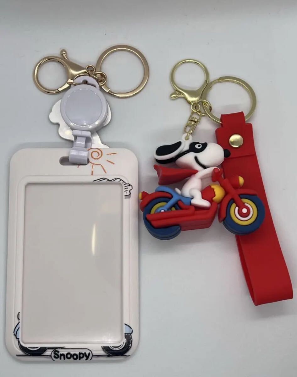 バイクに乗るスヌーピーの可愛いパスケースとキーホルダーセット。